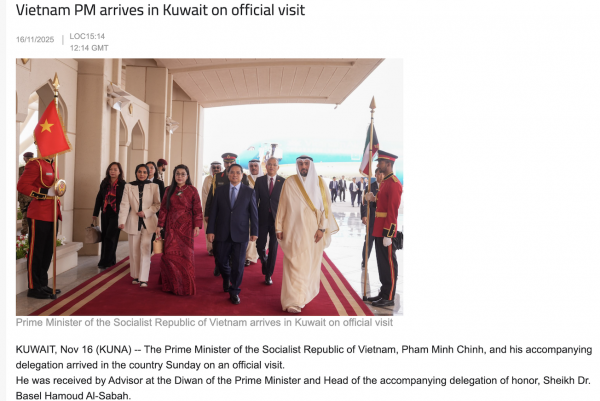 Còn tờ Kuwait Times thì nhấn mạnh chuyến công du tới Kuwait của Thủ tướng mang ý nghĩa chiến lược, mở ra các lĩnh vực hợp tác mới về đầu tư, năng lượng, thương mại và hợp tác khu vực trong khuôn khổ GCC – thời điểm Kuwait đang giữ vai trò Chủ tịch hội đồng này. Đồng thời, Kuwait Times lưu ý, Thủ tướng Phạm Minh Chính cũng gặp gỡ cộng đồng người Việt tại Kuwait và hội kiến các cơ quan phát triển của nước chủ nhà, thể hiện chiều sâu của quan hệ song phương.