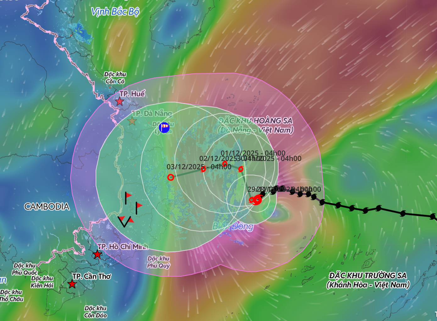 Dự báo trong ngày và đêm 30/11, bão lại đổi hướng tây bắc với tốc độ rất chậm 3-5km/h. Đến 4h ngày 1/12, tâm bão còn cách Bình Định cũ khoảng 210km với cường độ khoảng cấp 9, giật cấp 12.