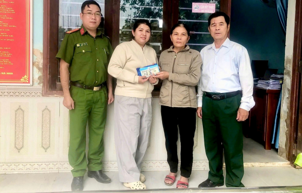 Công an xã Hà Nha tổ chức trao trả tài sản cho bà Lan.