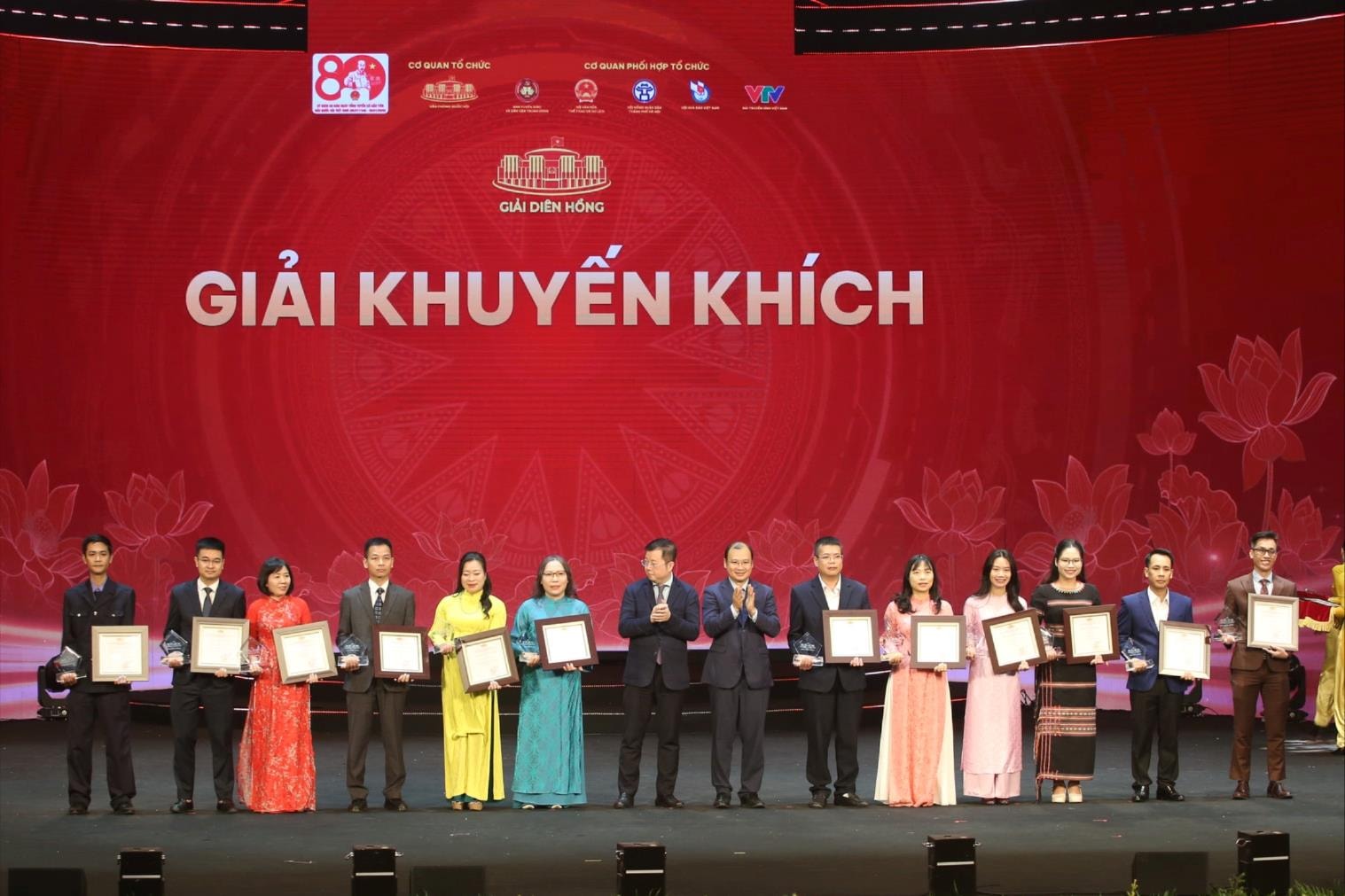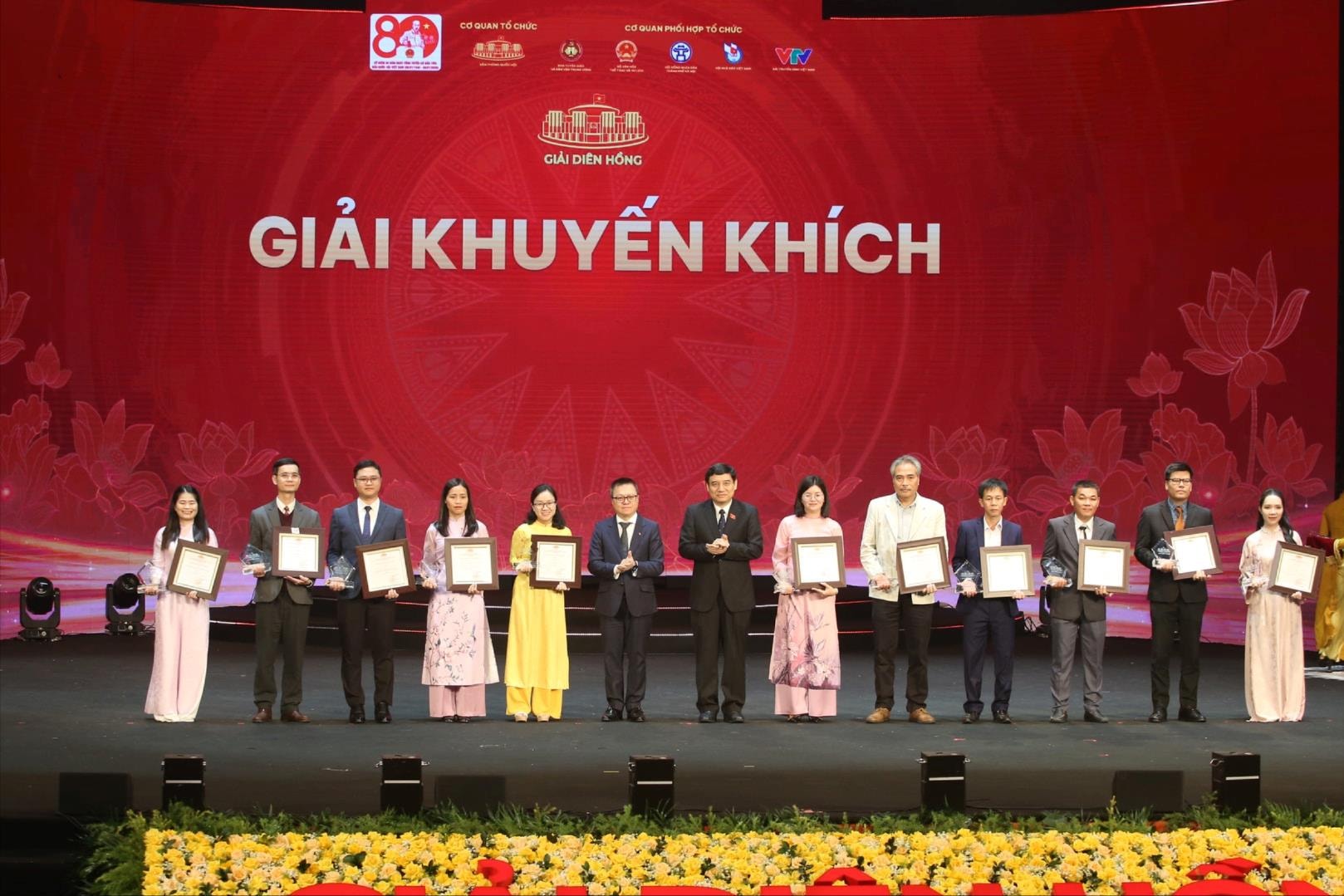 Đồng chí Lê Quốc Minh, Ủy viên Trung ương Đảng, Phó Trưởng Ban Tuyên giáo và Dân vận Trung ương, Tổng Biên tập Báo Nhân dân, Chủ tịch Hội Nhà báo Việt Nam, Chủ tịch Hội đồng Chung khảo Giải Diên Hồng lần thứ tư và đồng chí Nguyễn Đắc Vinh, Ủy viên Trung ương Đảng, Chủ nhiệm Ủy ban Văn hóa và Xã hội của Quốc hội trao giải cho các tác giả, nhóm tác giả đoạt giải Khuyến khích.