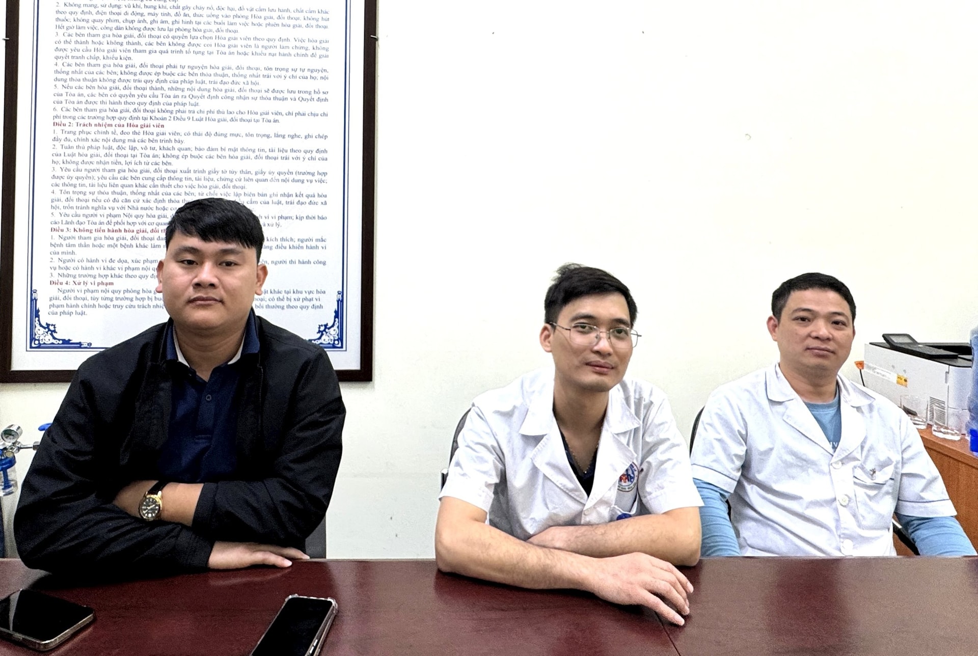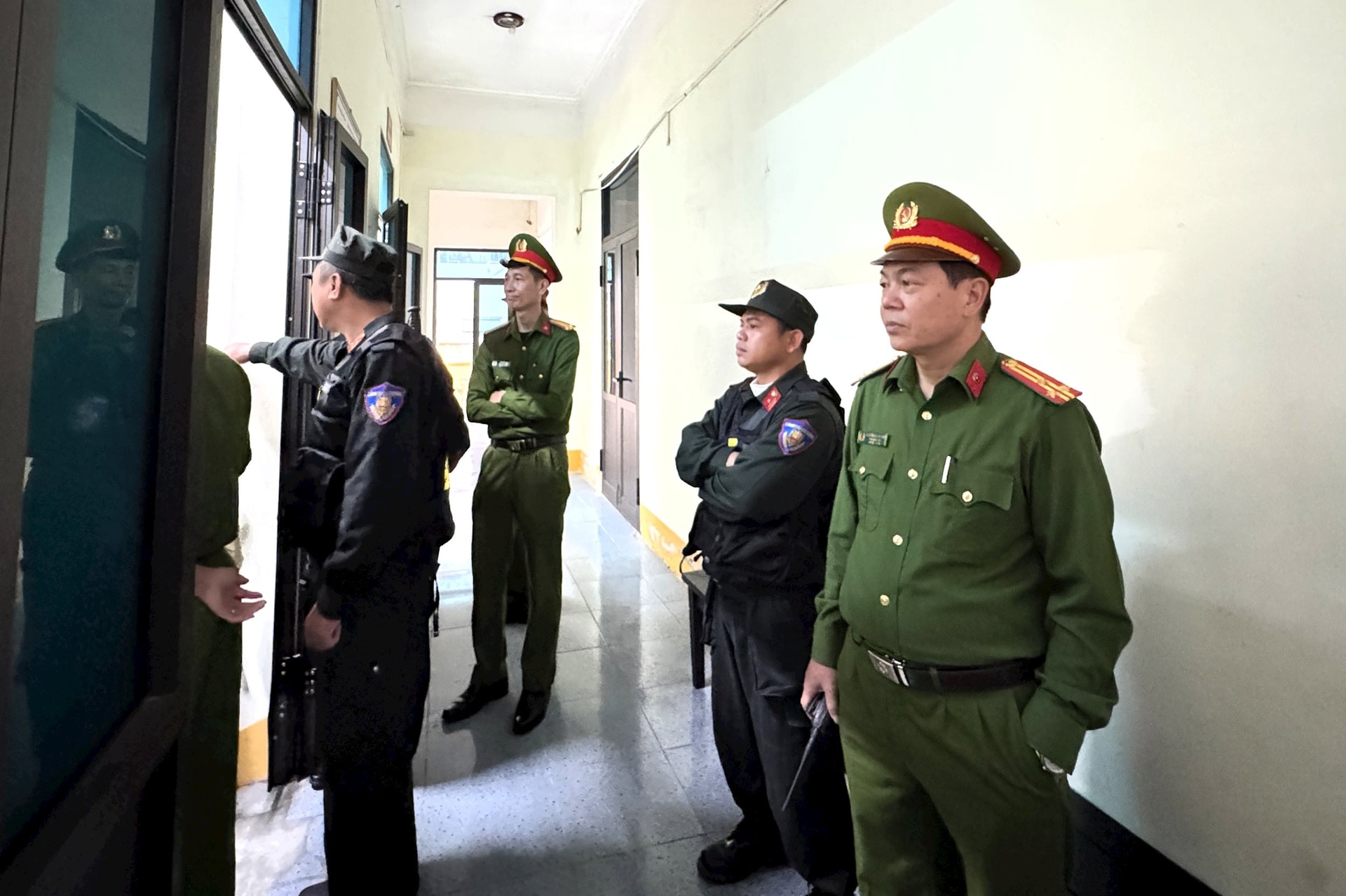 Ngay từ khu vực cổng, chỉ những người có giấy triệu tập của Tòa mới được vào khu vực xét xử. Bên trong khu vực sảnh, lực lượng Công an, bảo vệ Tòa án và lực lượng y tế túc trực để bảo đảm an toàn trong suốt quá trình diễn ra phiên tòa.