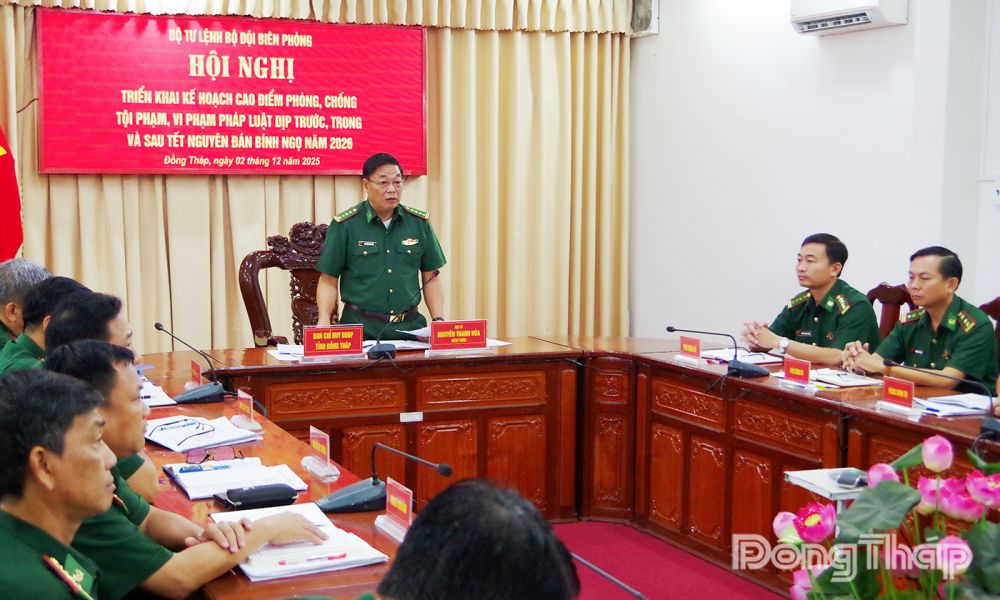 Trung tướng Vũ Trung Kiên, Tư lệnh BĐBP chủ trì và chỉ đạo hội nghị. Đại tá Nguyễn Thanh Hòa, Chỉ huy trưởng Ban Chỉ huy BĐBP tỉnh tham dự và chủ trì tại điểm cầu tỉnh Đồng Tháp.