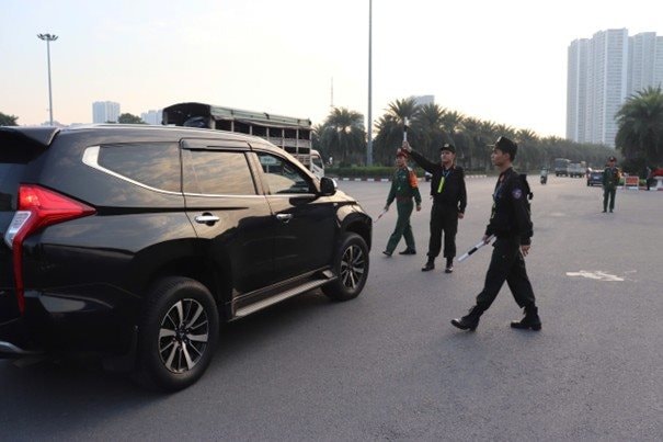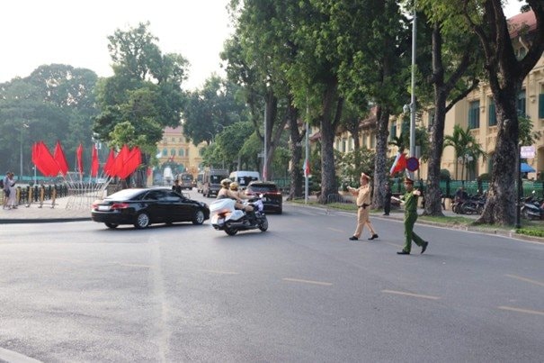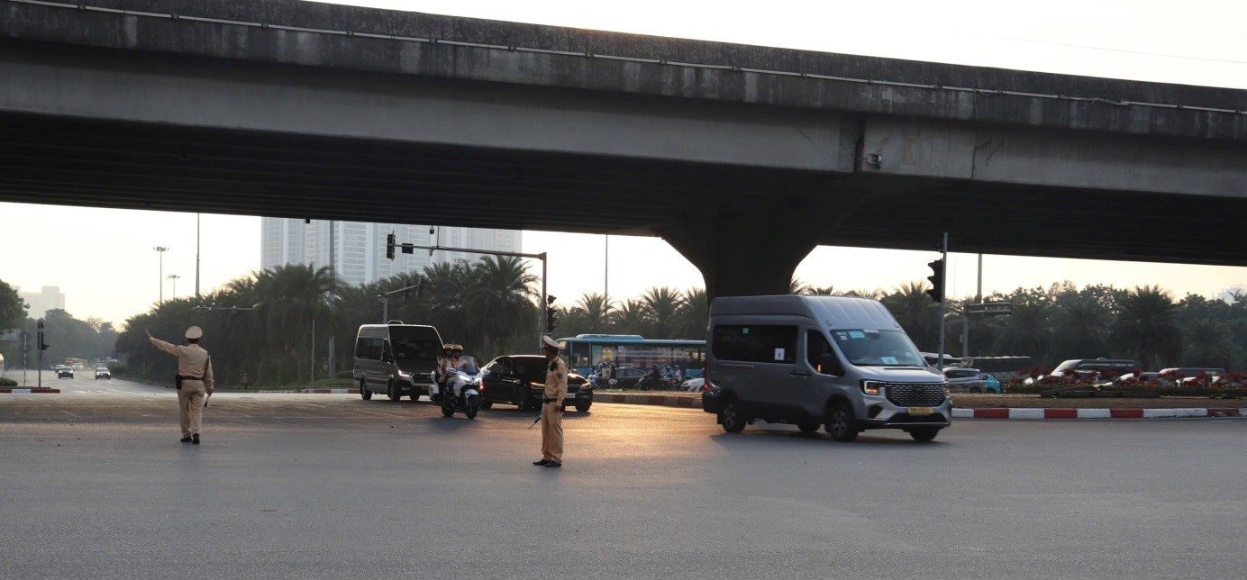 Trên toàn bộ các tuyến giao thông trọng điểm, các tổ công tác làm nhiệm vụ dẫn đoàn, phân luồng, điều tiết phương tiện, phối hợp nhịp nhàng giữa các đơn vị, bảo đảm hành trình di chuyển của các đoàn đại biểu trong nước và quốc tế được an toàn, thông suốt. Các chốt kiểm soát, bảo vệ tại Trung tâm Hội nghị Quốc gia và dọc các tuyến đường đều được tổ chức khoa học, bố trí lực lượng, phương tiện, thiết bị kỹ thuật hợp lý, sẵn sàng xử lý kịp thời mọi tình huống phát sinh.