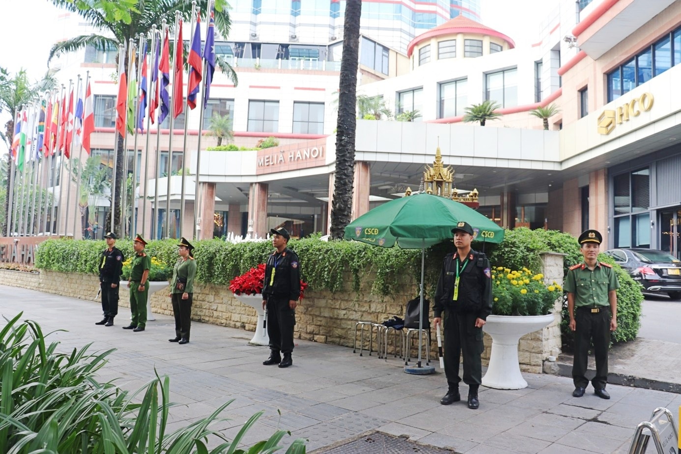 Lực lượng làm nhiệm vụ bảo vệ tại khách sạn Melia, bảo đảm an ninh, an toàn tuyệt đối cho đại biểu quốc tế