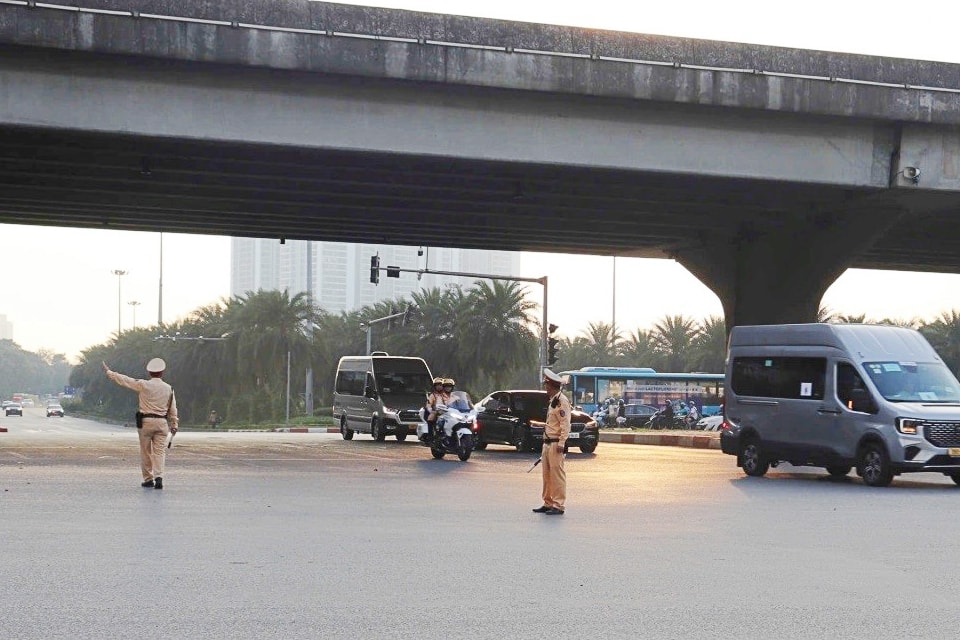 Trên toàn bộ các tuyến giao thông trọng điểm, các tổ công tác làm nhiệm vụ dẫn đoàn, phân luồng, điều tiết phương tiện, phối hợp nhịp nhàng giữa các đơn vị, bảo đảm hành trình di chuyển của các đoàn đại biểu trong nước và quốc tế được an toàn, thông suốt. Các chốt kiểm soát, bảo vệ tại Trung tâm Hội nghị Quốc gia và dọc các tuyến đường đều được tổ chức khoa học, bố trí lực lượng, phương tiện, thiết bị kỹ thuật hợp lý, sẵn sàng xử lý kịp thời mọi tình huống phát sinh.