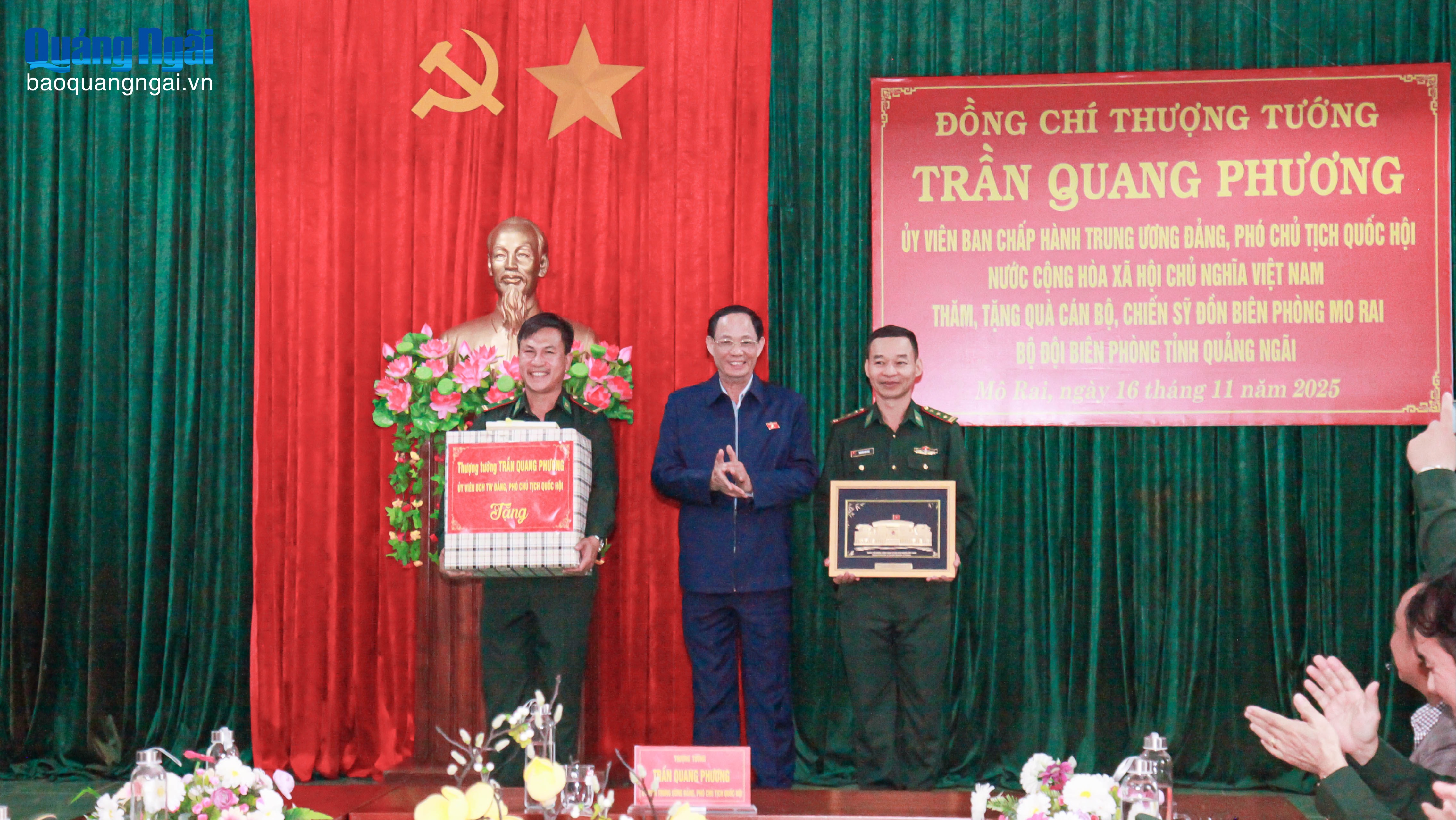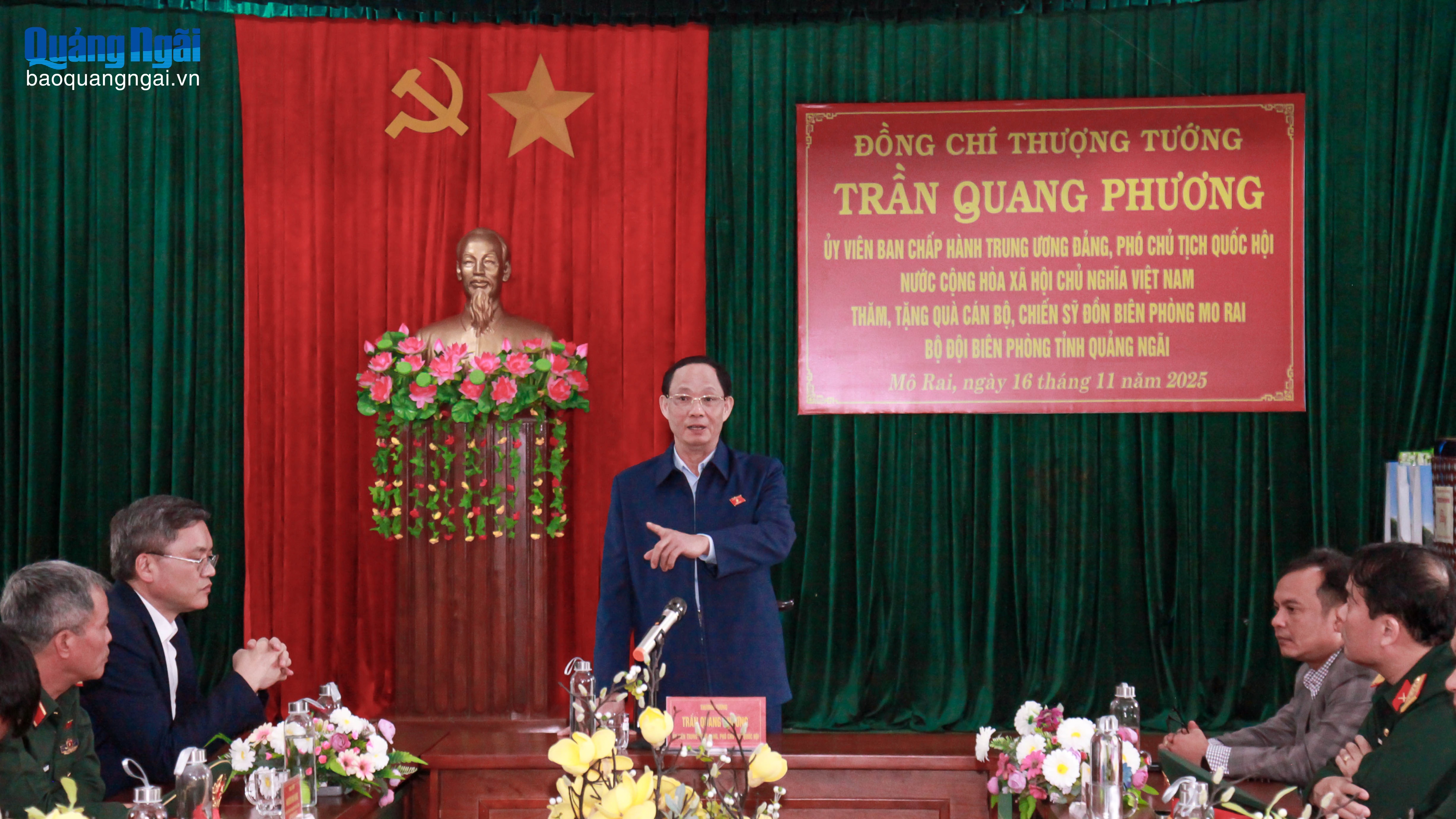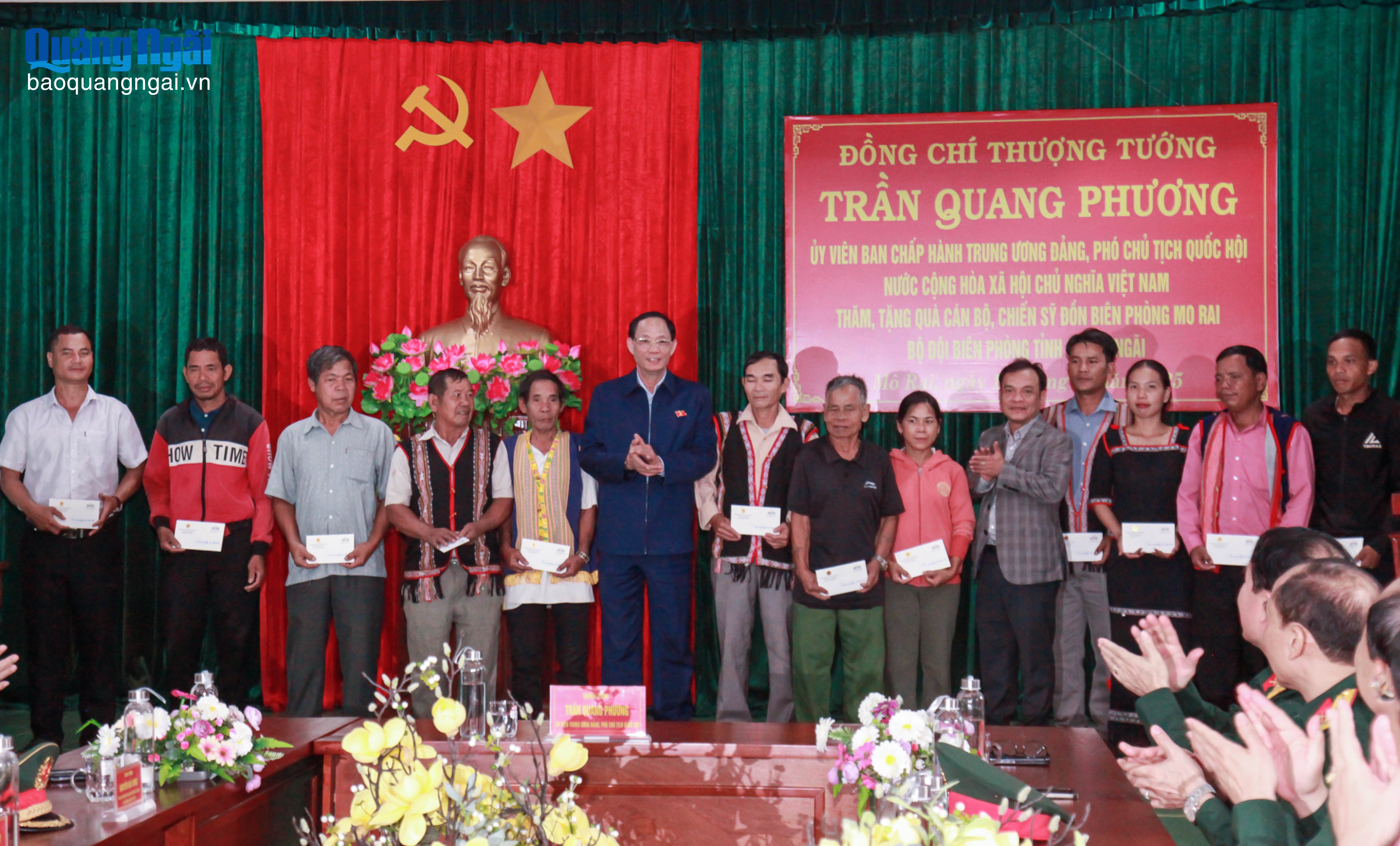Tại Đồn Biên phòng Mô Rai, Phó Chủ tịch Quốc hội Trần Quang Phương ghi nhận và đánh giá cao tinh thần trách nhiệm, nỗ lực của tập thể cán bộ, chiến sĩ trong thực hiện nhiệm vụ quản lý, bảo vệ biên giới, góp phần giữ vững an ninh chính trị, trật tự an toàn xã hội trên địa bàn.
