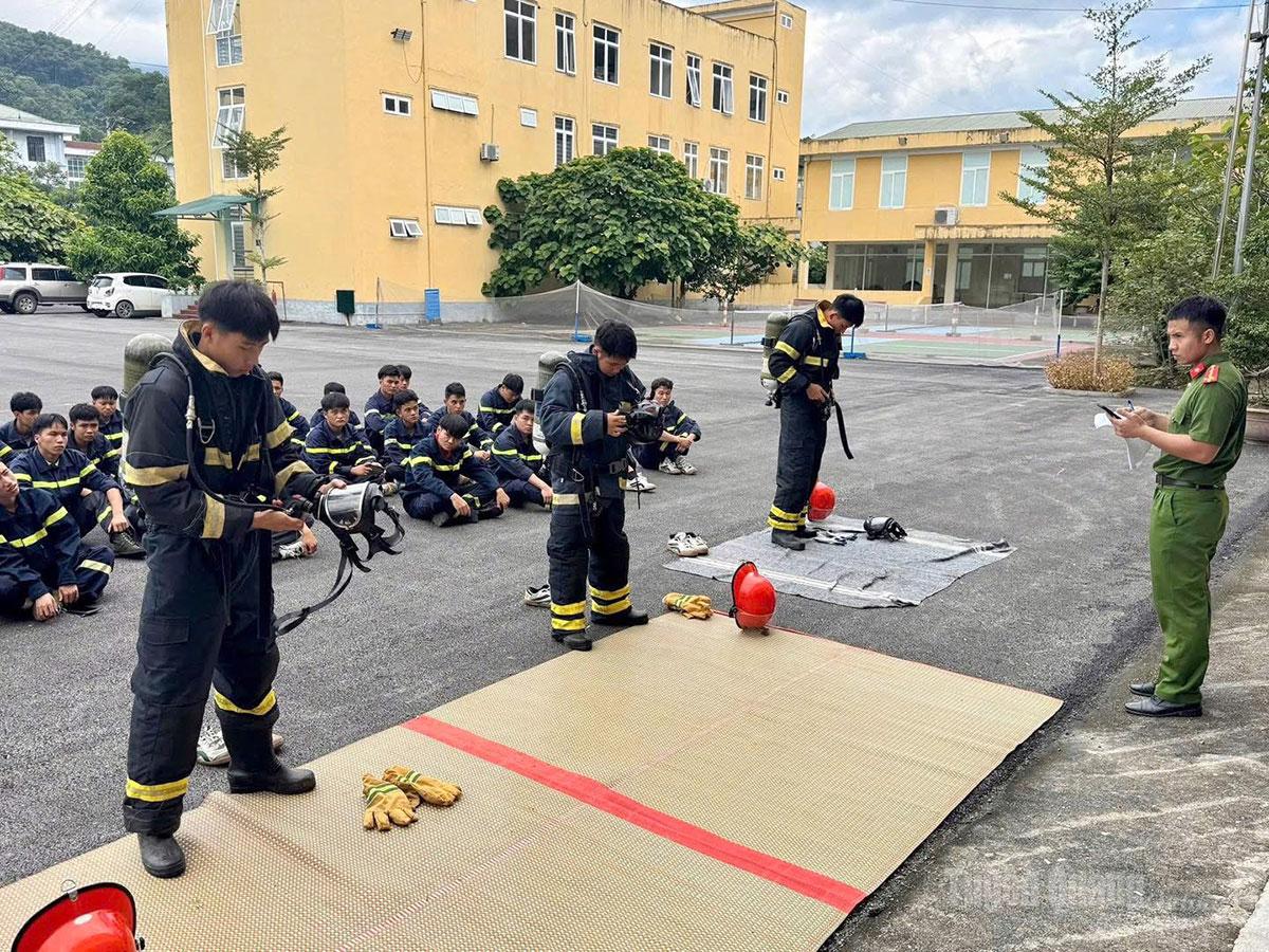 Lực lượng cảnh sát phòng cháy chữa cháy và cứu hộ cứu nạn luyện tập nâng cao khả năng sẵn sàng chiến đấu.