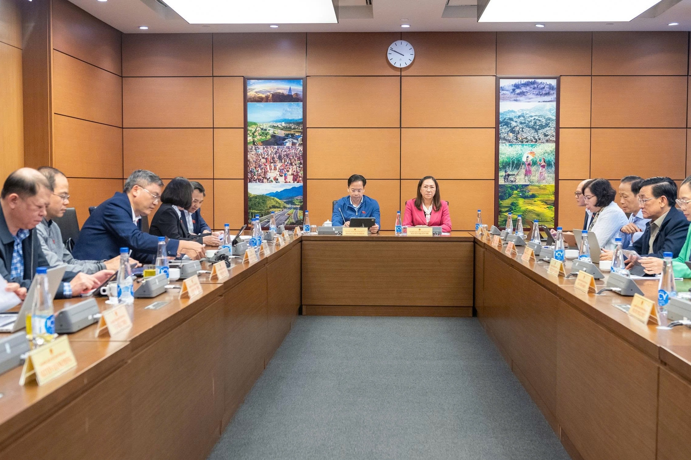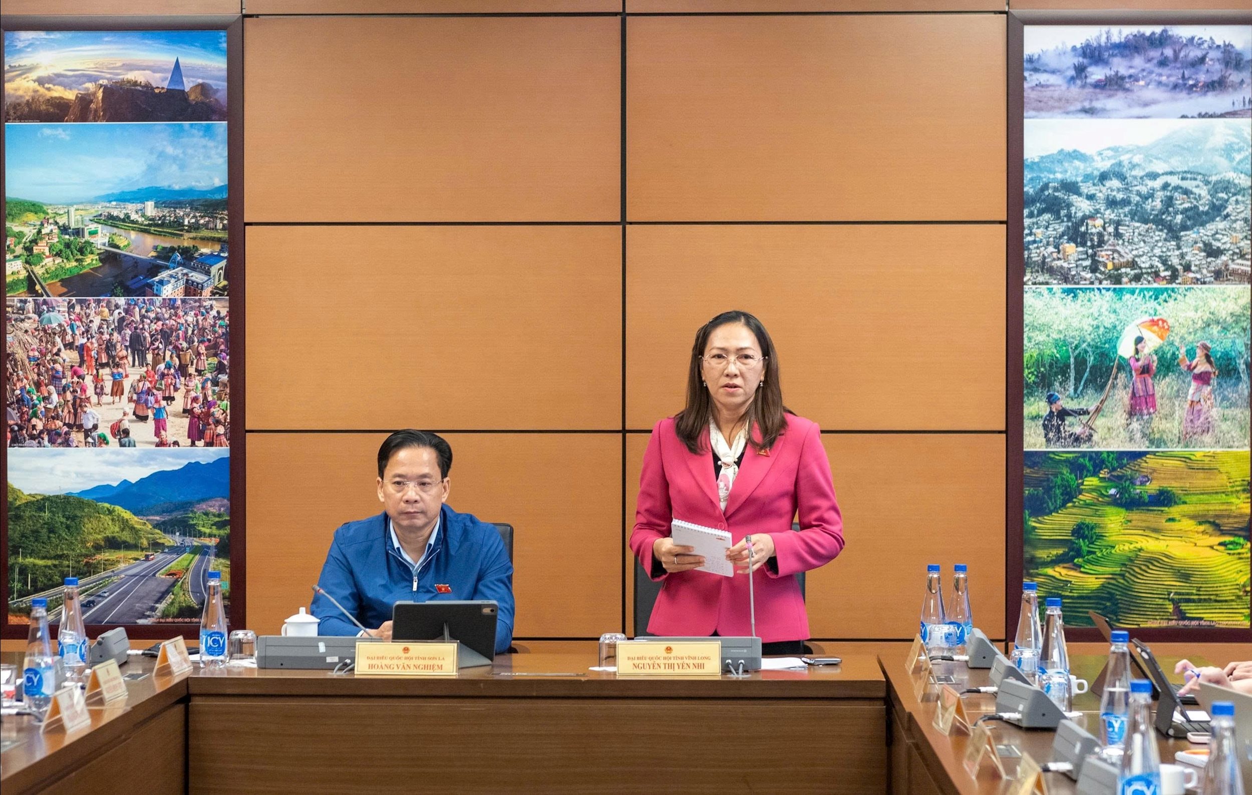 Đoàn ĐBQH tỉnh Sơn La và Đoàn ĐBQH tỉnh Vĩnh Long thảo luận tại Tổ 13. Ảnh: Mạnh Hưng