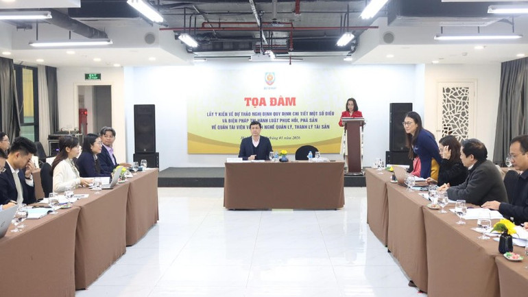 Tại tọa đàm, một số ý kiến đề xuất cần bổ sung cơ sở xác định thẩm quyền thu hồi chứng chỉ hành nghề quản tài viên trong trường hợp thu hồi chứng chỉ hành nghề quản tài viên đối với trường hợp do Bộ Tư pháp cấp vào khoản 2 Điều 9 dự thảo Nghị định; bổ sung nội dung quy định xóa đăng ký hành nghề quản lý, thanh lý tài sản với tư cách cá nhân trong trường hợp quản tài viên chết; bổ sung quy định về tên gọi của doanh nghiệp hành nghề quản lý, thanh lý tài sản thể hiện tính đặc thù tương tự như các lĩnh vực bổ trợ tư pháp khác để phân biệt với các doanh nghiệp khác…