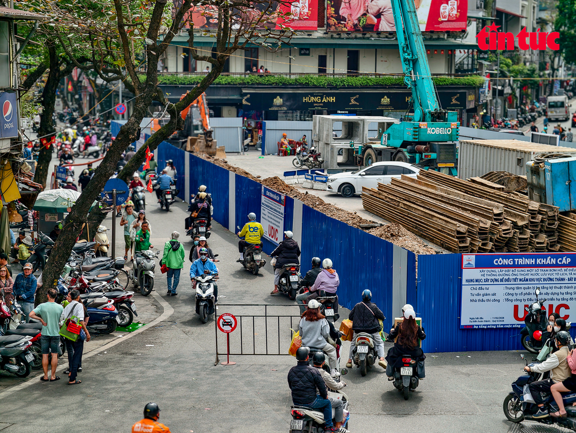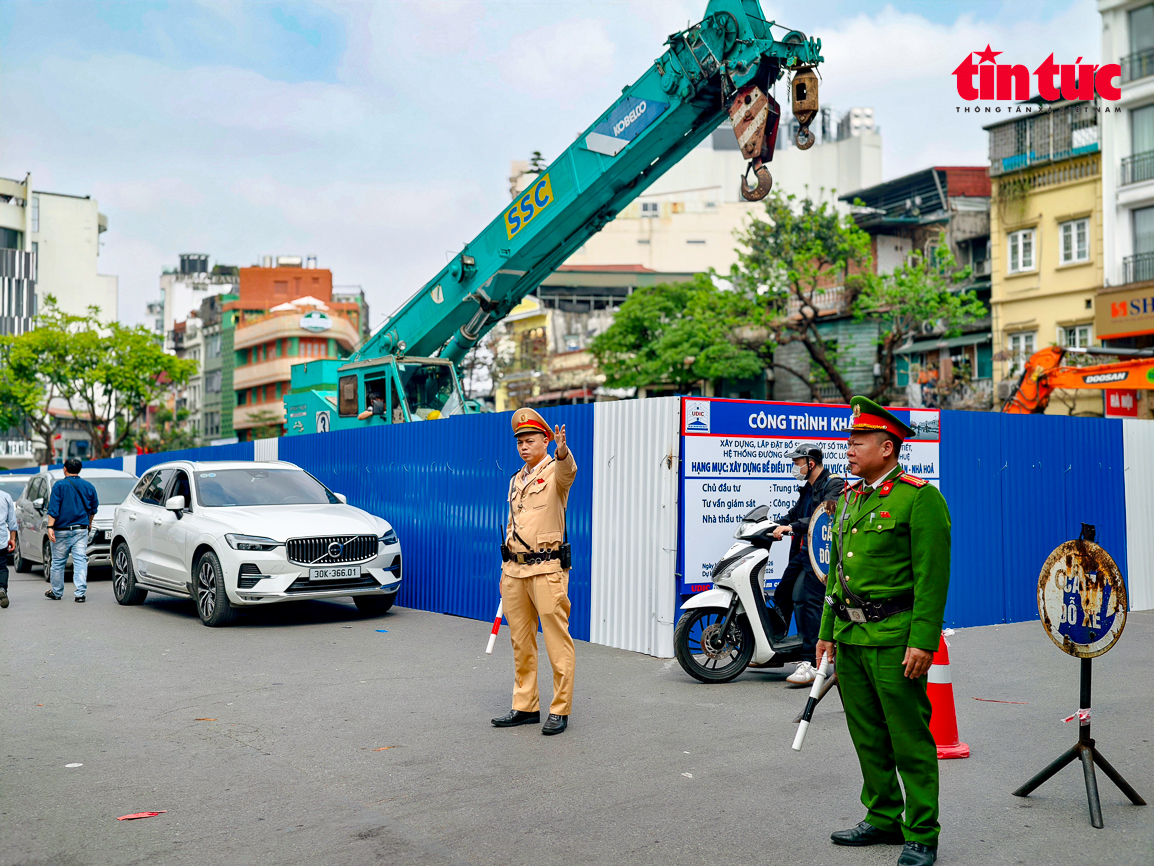 Theo đó, lực lượng CSGT được bố trí tại nhiều vị trí trọng yếu: một tổ trực tiếp điều tiết tại điểm rào chắn; một tổ đứng tại hướng Hàng Bông – Đường Thành; một tổ phân luồng từ xa, hướng dẫn các phương tiện không có nhu cầu đi vào khu vực này chuyển sang các tuyến rộng hơn để tránh dồn ứ cục bộ.