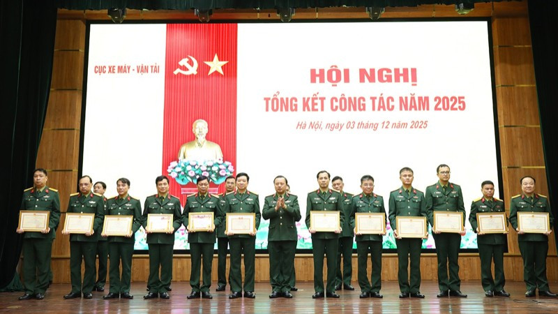 Trao Bằng khen của Bộ trưởng Quốc phòng cho các tập thể, cá nhân của Cục Xe máy-Vận tải đạt thành tích xuất sắc trên các mặt công tác năm 2025.