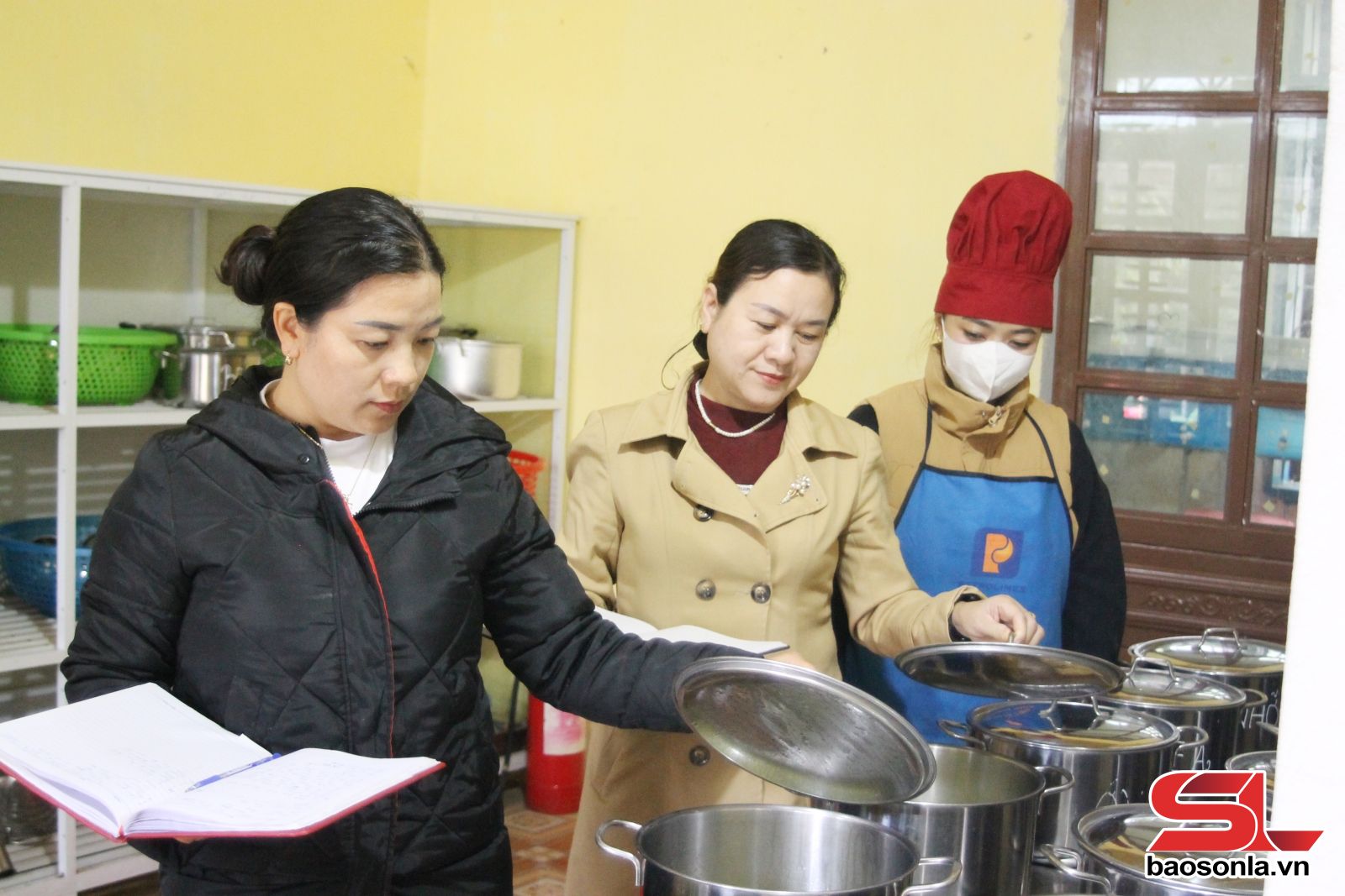 Ban Giám hiệu Trường Mầm non 1.6 Nậm Lầu, xã Nậm Lầu, kiểm tra công tác chuẩn bị bữa ăn cho trẻ.