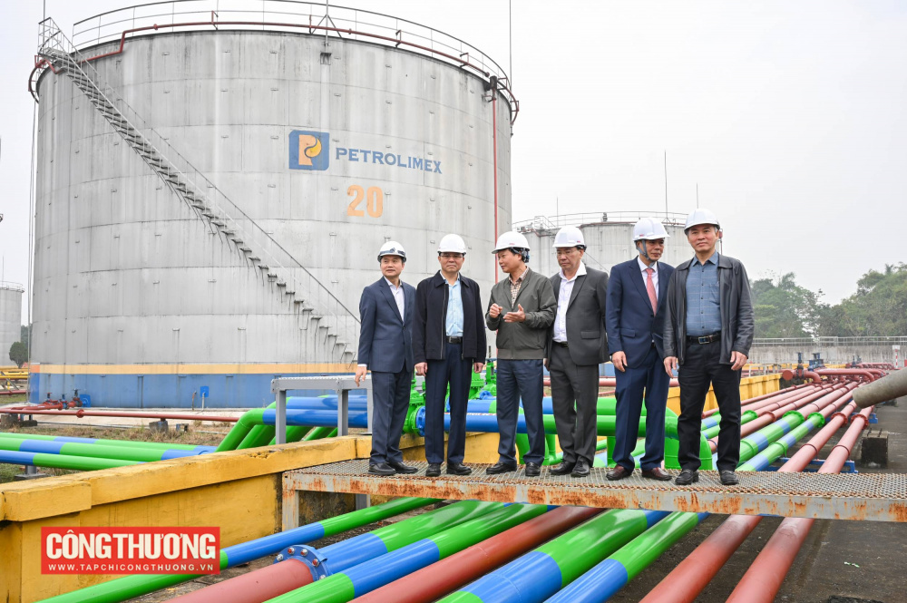 Quyền Bộ trưởng Lê Mạnh Hùng đến kiểm tra tại Công ty TNHH MTV Petrolimex Hà Nội, Tổng kho xăng dầu Đức Giang thuộc Tập đoàn Xăng dầu Việt Nam (Petrolimex)