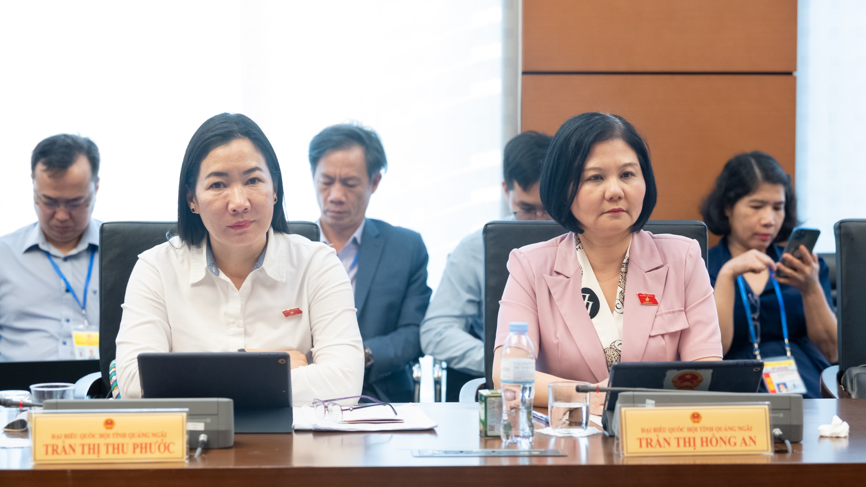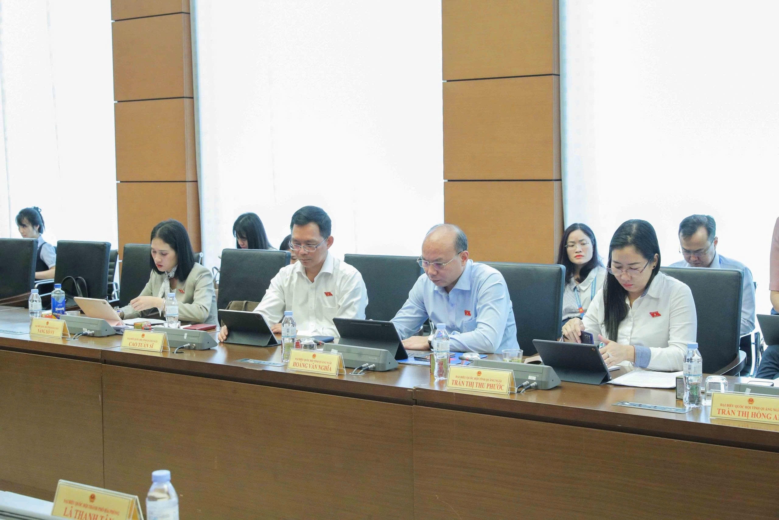 Các ĐBQH tỉnh Quảng Ngãi tham dự phiên thảo luận tại Tổ 5. Ảnh: Phạm Thắng