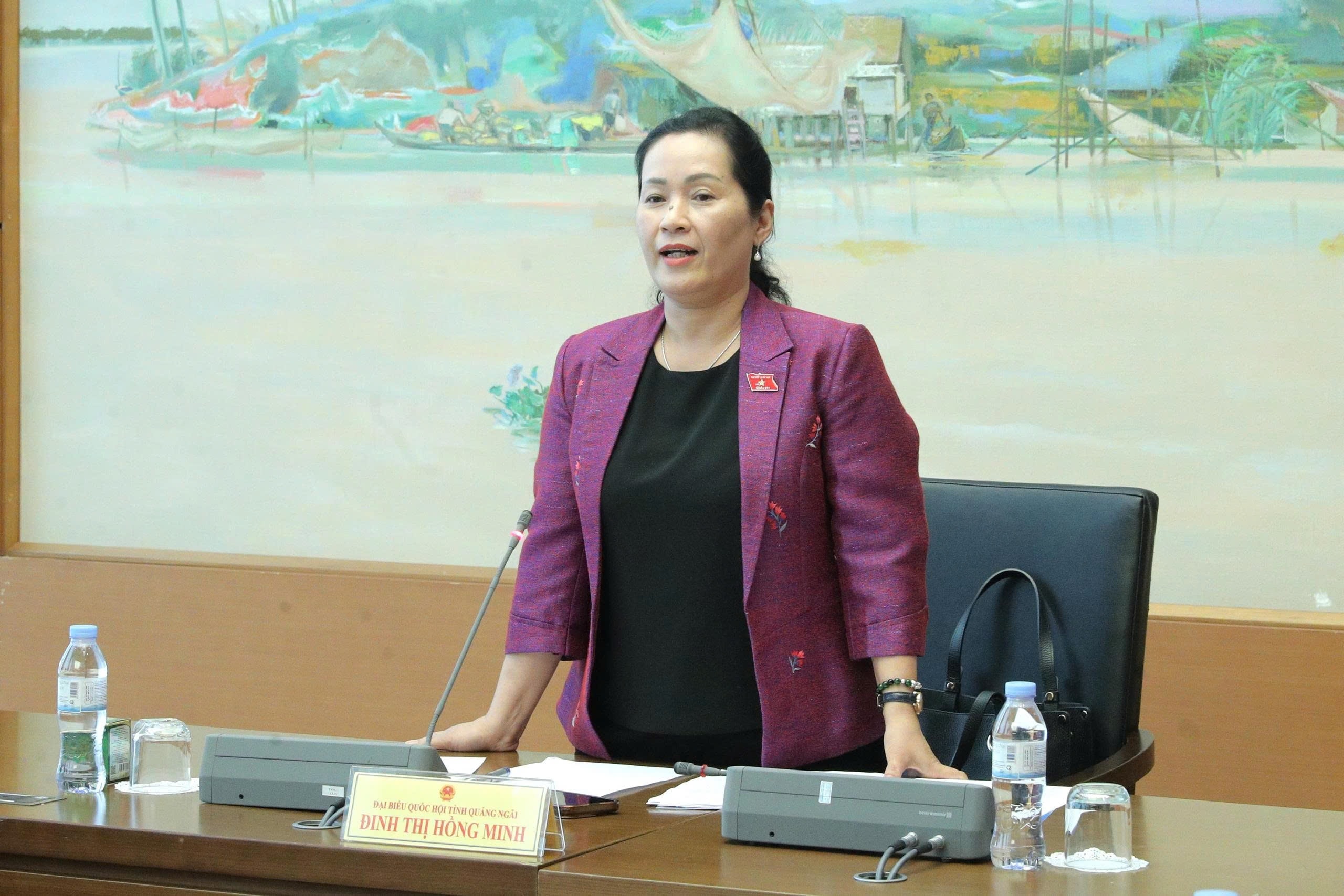 Trưởng Đoàn ĐBQH tỉnh Quảng Ngãi Đinh Thị Hồng Minh điều hành phiên thảo luận Tổ 11. Ảnh: Hồ Long