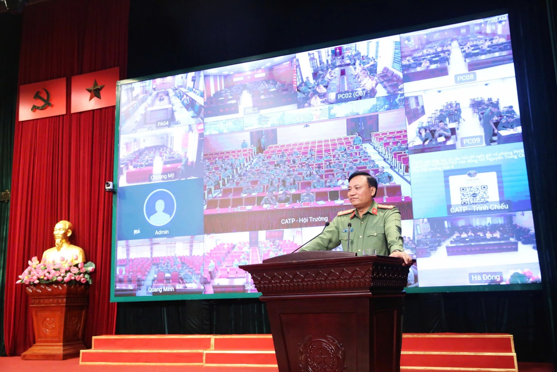 Phó Giám đốc Công an TP. Hà Nội, Đại tá Nguyễn Tiến Đạt phát biểu tại hội nghị