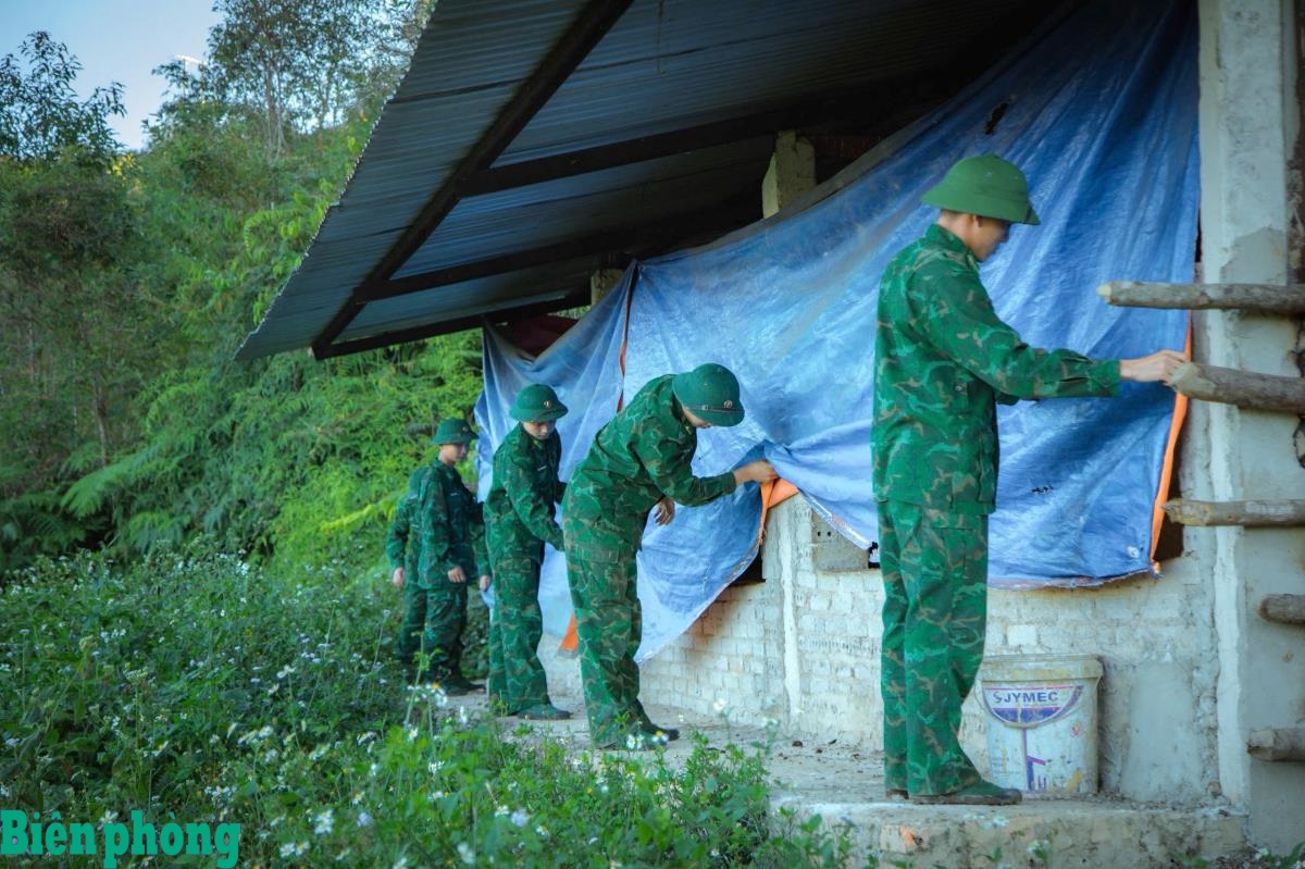 Bộ đội Biên phòng tỉnh Điện Biên thực hiện các biện pháp che chắn chuồng chăn nuôi gia súc, gia cầm. Ảnh: Đơn vị cung cấp