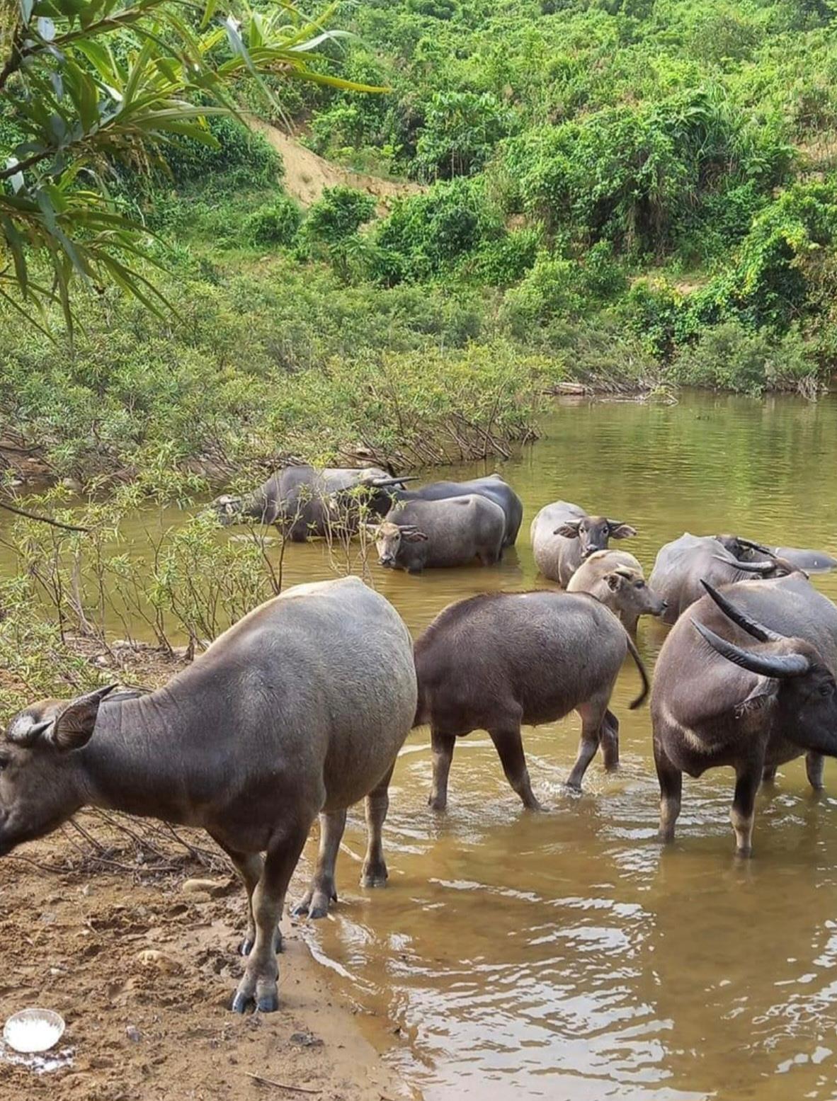Trâu thả hoang dã trên đầu nguồn sông Cu Đê.