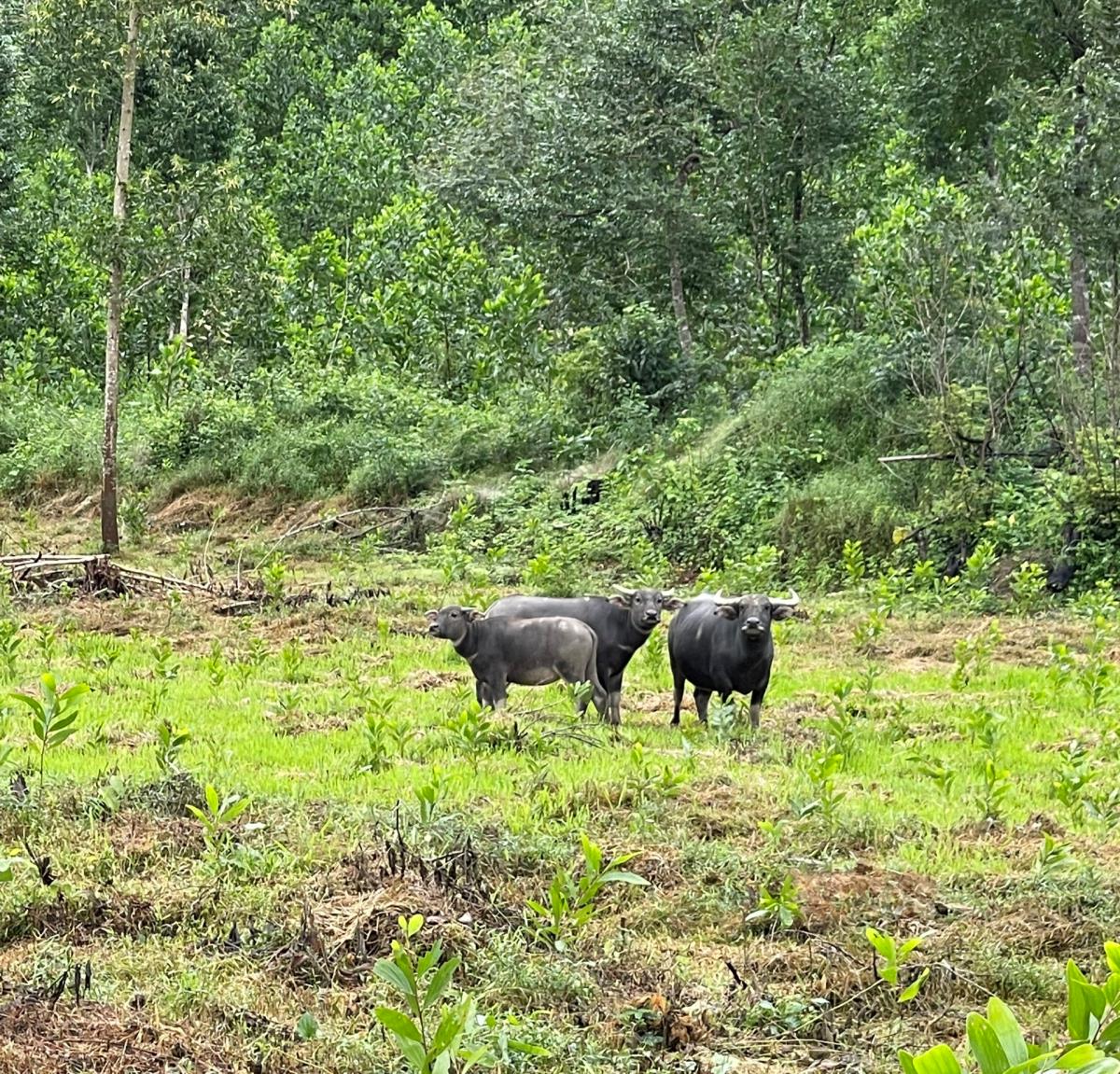 Trâu thả hoang dã phá hoại vườn cây mới trồng tại khu vực khu dân cư Tà Lang, phường Hải Vân.