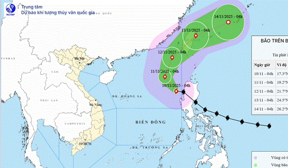 Trung tâm Dự báo khí tượng thủy văn quốc gia cho hay, sáng sớm nay (10/11), bão Fung - Wong đã đi vào vùng biển phía Đông khu vực Bắc Biển Đông, trở thành cơn bão số 14 trong năm 2025.