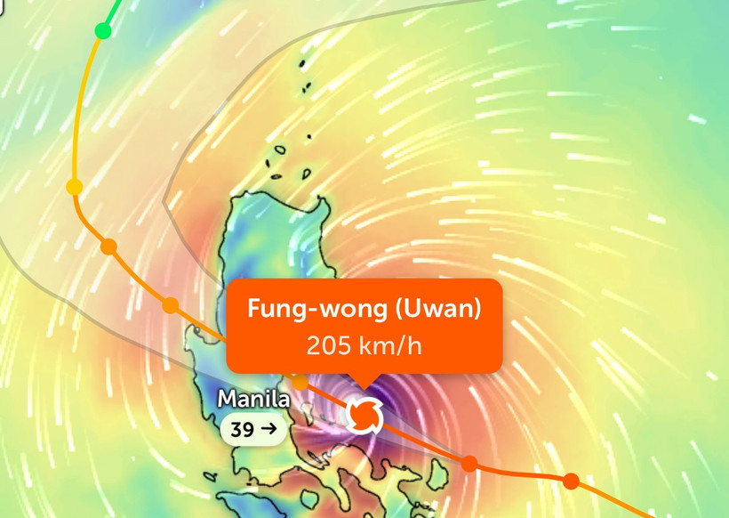 Vị trí bão Fung-Wong lúc 14 giờ 30 phút ngày 9/11. (Ảnh: Zoom Earth)