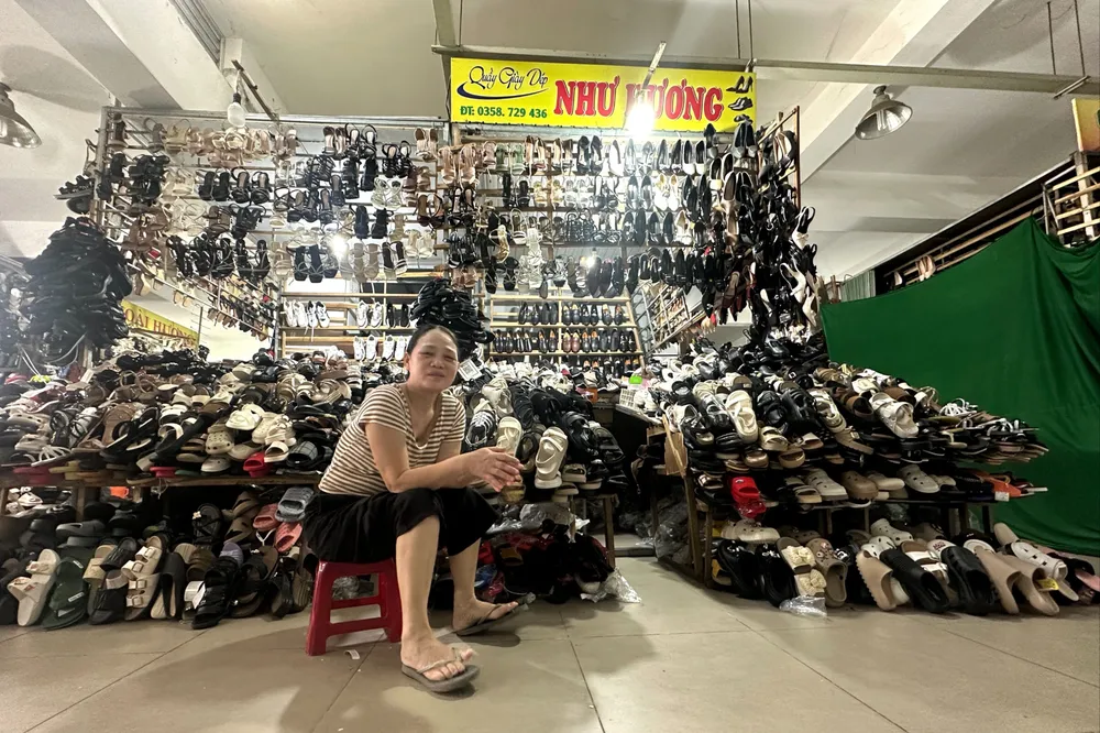 Buôn bán giày dép, mũ nón tại chợ Tam Kỳ hơn 11 năm, chị Sơn Đào nói có nghe thông tin dời chợ qua mạng xã hội nhưng đến nay chưa được thông báo chính thức từ cơ quan chức năng.