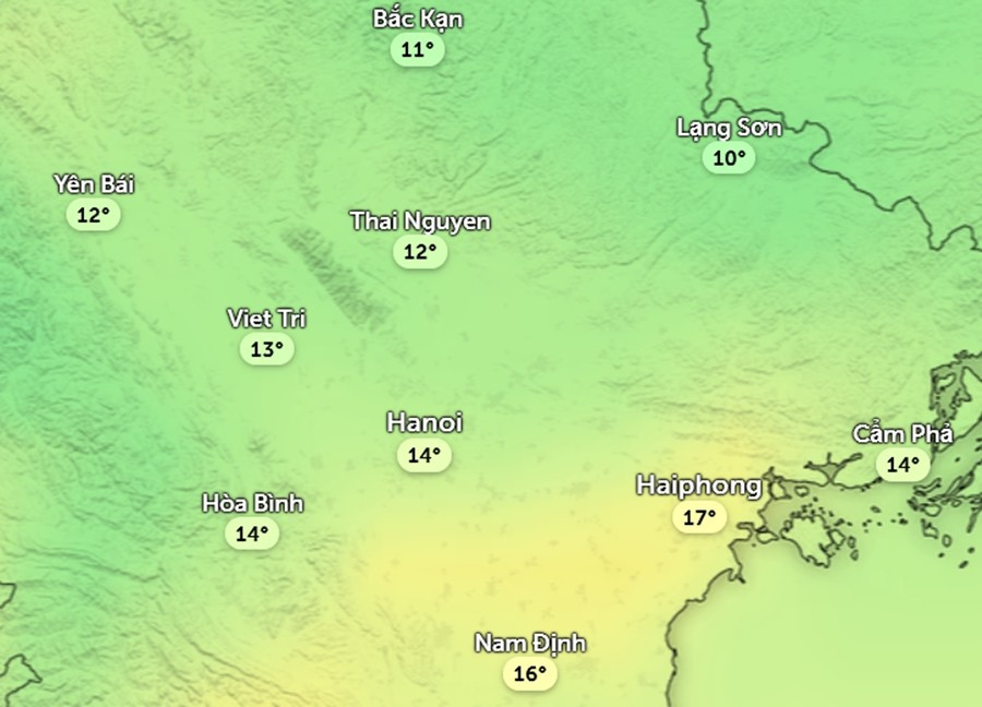 Ngoài ra, bầu trời Hà Nội cũng có xu hướng sáng dần, tức là giảm mây. Chiều nay, trời sáng hơn cùng thời điểm hôm qua, thậm chí có thể le lói nắng. Trong vài ngày tới cũng vậy, lúc nhiều mây, lúc hửng nắng, nhưng nếu có nắng cũng chỉ nhẹ và ít, không rực rỡ và khô hanh như đợt rét trước nữa.