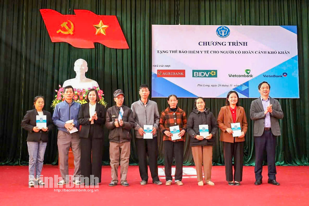Năm 2025, thực hiện kế hoạch của BHXH Việt Nam về việc phát động chương trình “Tặng thẻ BHYT cho người có hoàn cảnh khó khăn - mang Tết ấm đến với người nghèo Xuân Bính Ngọ", BHXH tỉnh Ninh Bình đã phát động chương trình tặng thẻ BHYT năm 2025 và đã nhận được tổng số tiền ủng hộ là gần 570 triệu đồng. Từ nguồn kinh phí được hỗ trợ và ủng hộ, BHXH tỉnh và BHXH các cơ sở đã phối hợp với các xã, phường lập danh sách người có hoàn cảnh khó khăn để trao tặng thẻ BHYT.