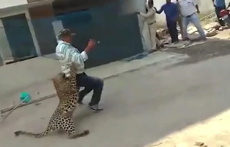 Vụ chạm trán nghẹt thở giữa người và thú đã xảy ra tại thành phố Indore, bang Madhya Pradesh, Ấn Độ.