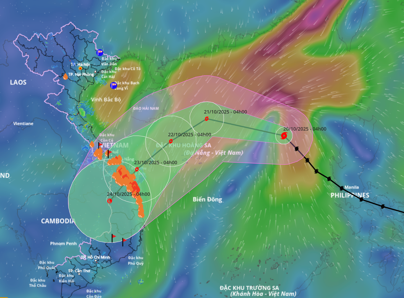 Kịch bản có xác suất cao nhất hiện nay là bão khi sẽ tiếp tục di chuyển theo hướng tây tây bắc trong đêm nay và ngày mai, hướng đến đặc khu Hoàng Sa của Việt Nam, sau đó tương tác không khí lạnh, đổi hướng và suy yếu thành áp thấp nhiệt đới trước khi đổ bộ đất liền khu vực Huế - Quảng Ngãi vào sáng 23/10.