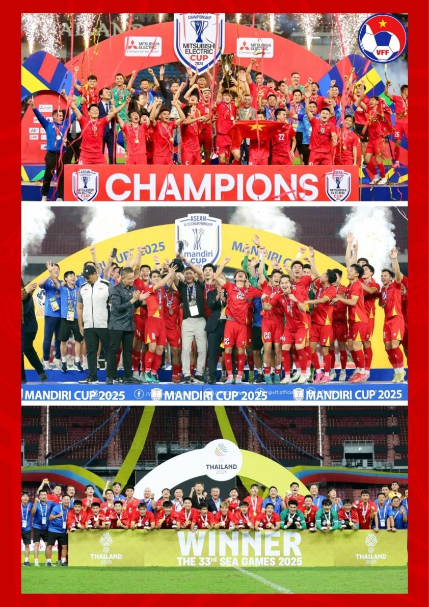 Cú hattrick tuyệt vời của bóng đá Việt Nam năm 2025 (Ảnh: VFF).