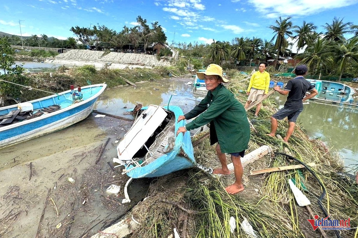 Theo bà, nước lũ dâng cao khiến hồ nuôi ngập tràn bờ, khả năng tôm không còn. “Khu vực trước nhà tôi cũng bị tàn phá nặng nề, nhiều tàu bè lạ trôi dạt vào nhưng chưa ai đến nhận”, bà Út nói.