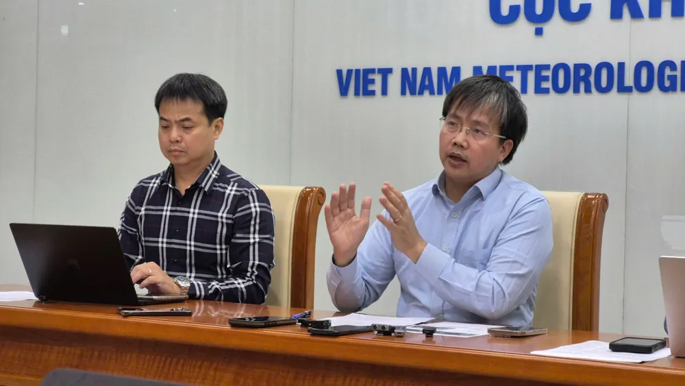 Ông Mai Văn Khiêm, Giám đốc Trung tâm Dự báo Khí tượng Thủy văn quốc gia thông tin về diễn biến bão Kalmaegi. Ảnh: AH