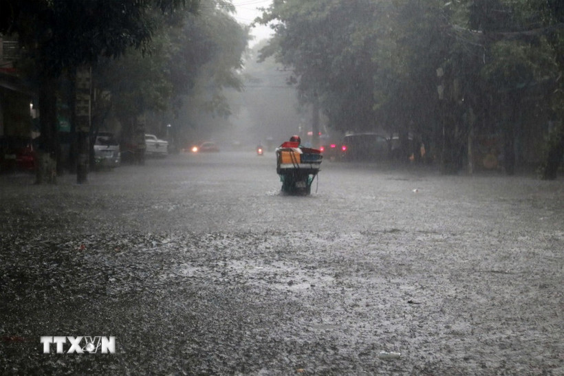 Mưa lớn khiến nhiều tuyến đường tại Nghệ An ngập nặng. (Ảnh: TTXVN phát)