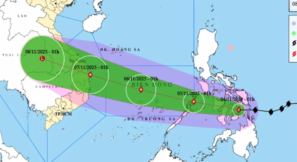 Đến rạng sáng 7-11, tâm bão có thể ở khoảng 14,1 độ vĩ Bắc; 109,4 độ kinh Đông – trên vùng biển ven bờ từ Quảng Ngãi đến Đắk Lắk (khu vực phía Nam TP Đà Nẵng mở rộng). Đây là vùng được dự báo chịu ảnh hưởng trực tiếp của bão với sức gió cấp 13, giật cấp 16.