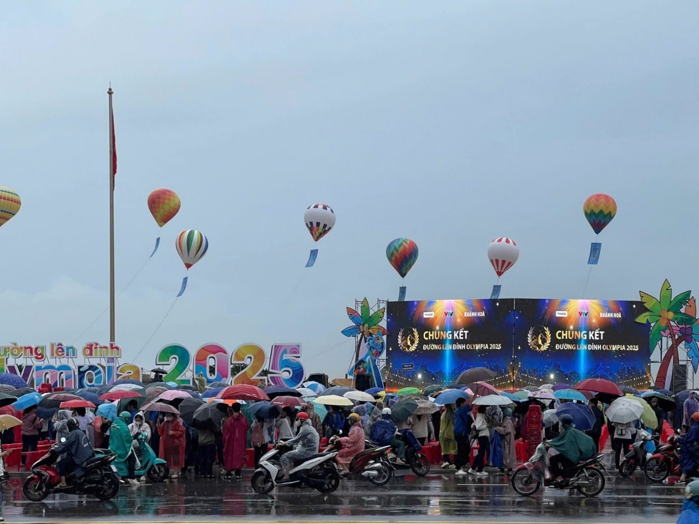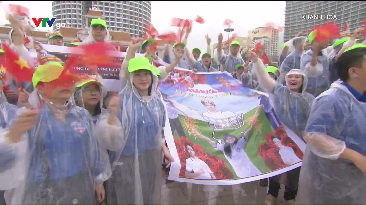 Ở điểm cầu Khánh Hòa tuy xuất hiện mưa nhưng người dân vẫn đến cổ vũ cho nhà leo núi Thanh Tùng. Ảnh: Đời sống dân sinh Nha Trang - Khánh Hòa.