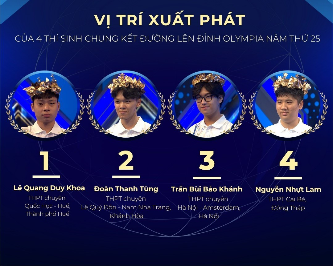 Trần Bùi Bảo Khánh (học sinh trường THPT chuyên Hà Nội - Amsterdam) đến với trận Chung kết năm với sự quyết tâm lớn, tự tin tâm lý vững vàng, sẵn sàng bứt phá bản thân giành lấy ngôi vị vô địch Olympia năm thứ 25.