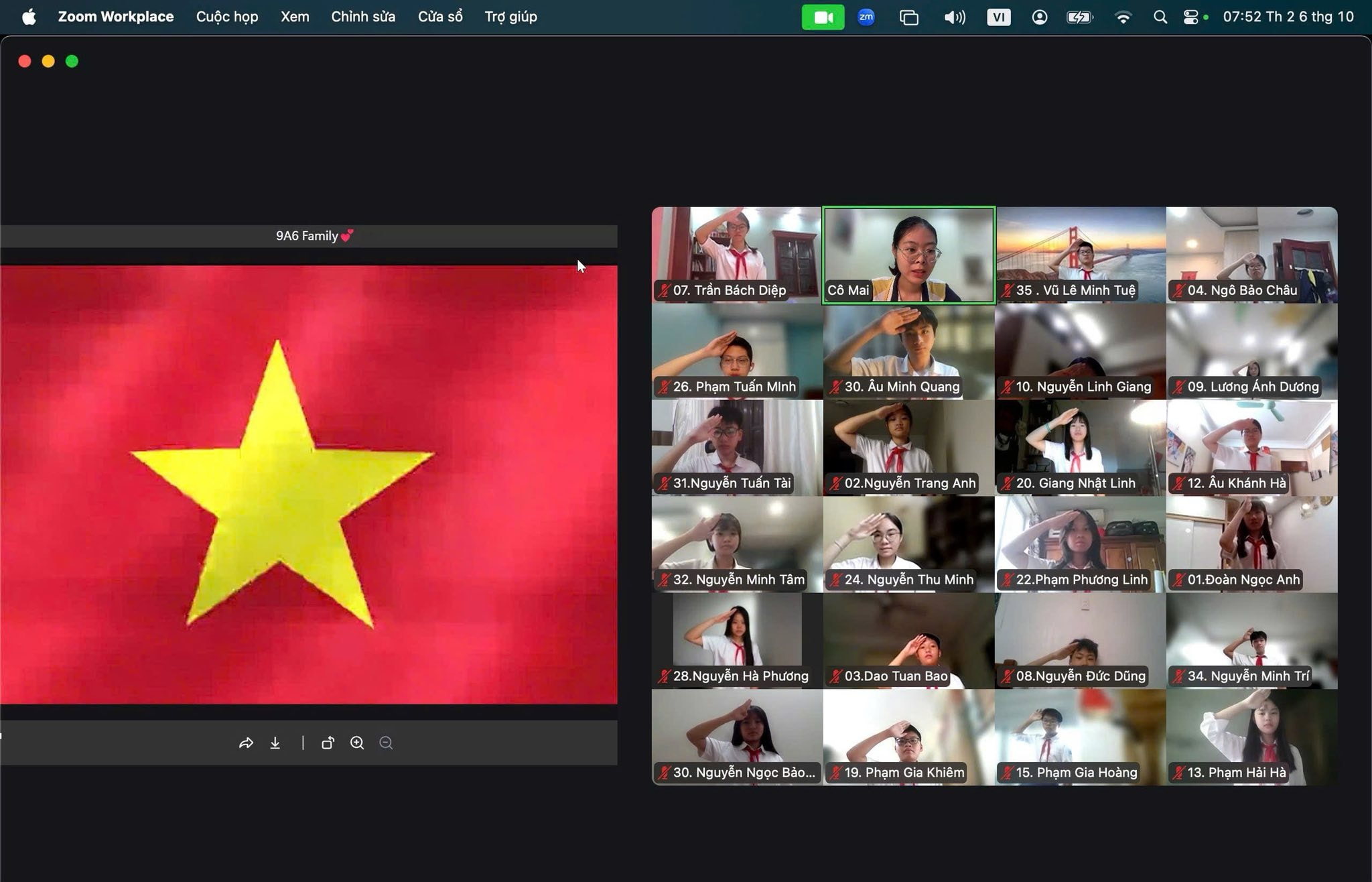 Nghi lễ chào cờ đầu tuần được tổ chức trực tuyến theo khung giờ thống nhất của từng trường. Học sinh tham gia trong trang phục chỉnh tề; đội viên thiếu niên đeo khăn quàng đỏ, bật camera theo yêu cầu, thực hiện nghi thức trang nghiêm. Giáo viên chủ nhiệm điểm danh, nhắc lại nội quy lớp học trực tuyến, phổ biến nội dung sinh hoạt đầu tuần, và lồng ghép nhắc nhở kỹ năng an toàn mùa mưa bão.