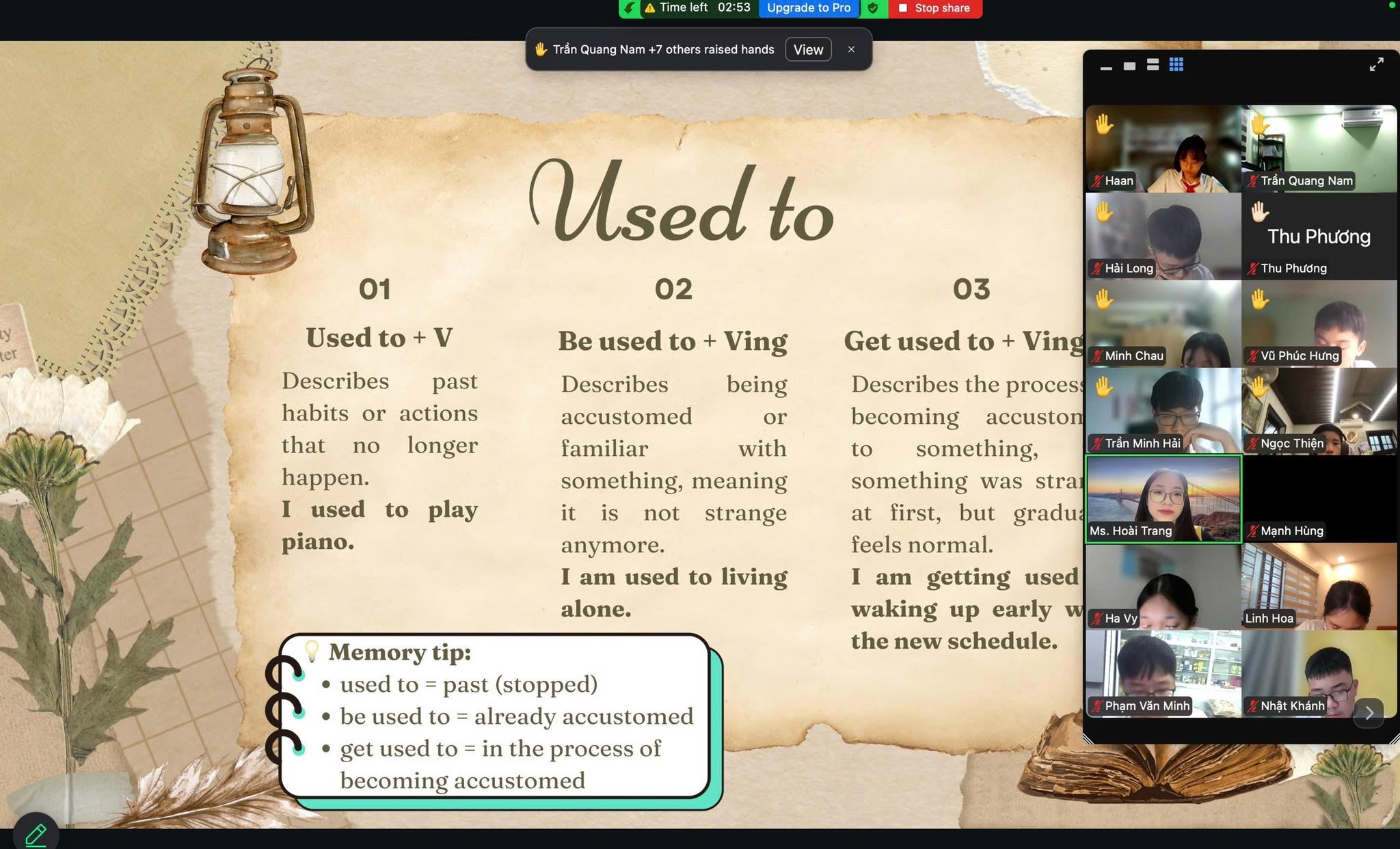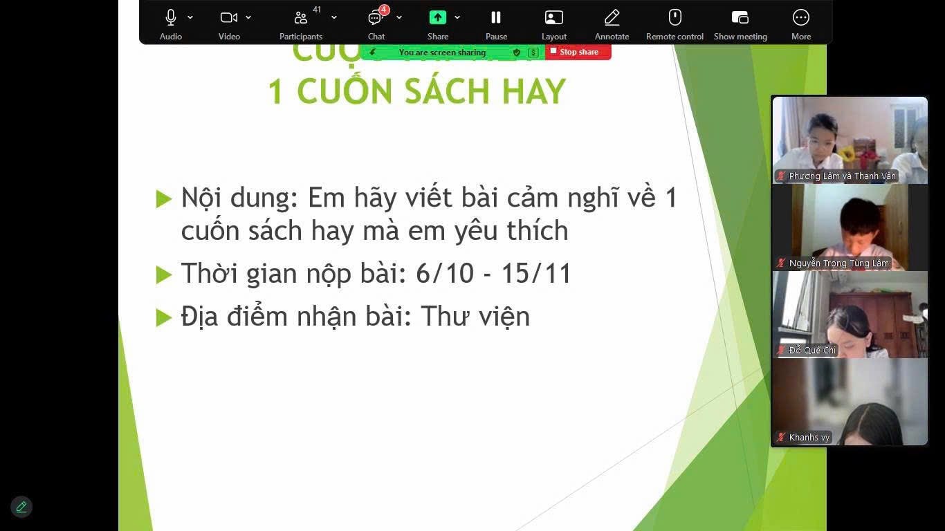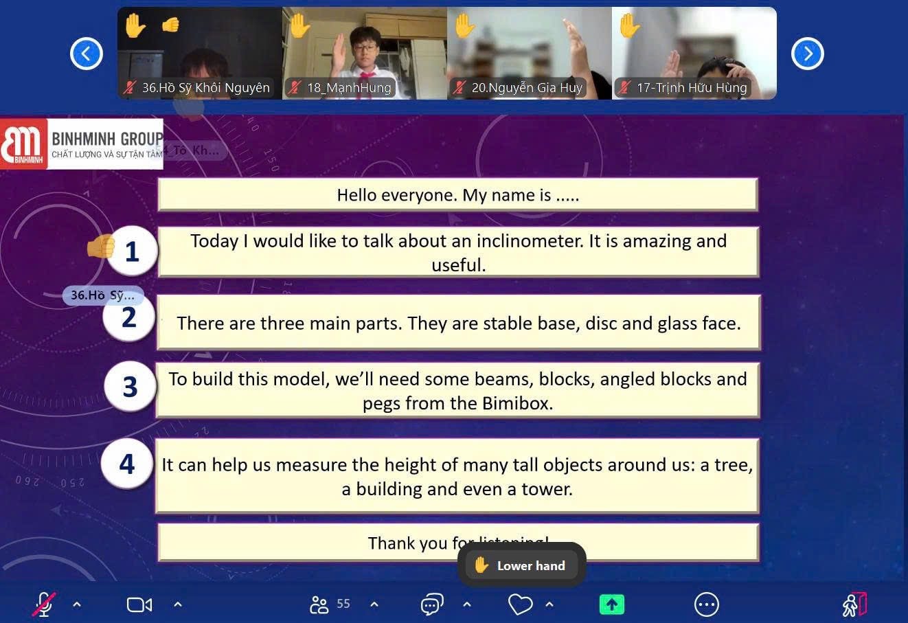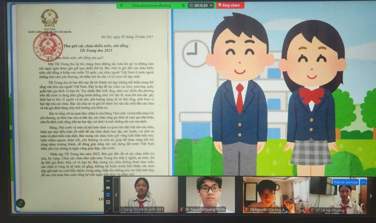 Công tác nề nếp trong lớp học trực tuyến được duy trì nghiêm như học trực tiếp: học sinh vào lớp đúng giờ, bật camera theo quy định, giơ tay phát biểu, ghi chép đầy đủ và nộp bài trên hệ thống quản lý học tập; giáo viên chủ động áp dụng các phương pháp tương tác như đố nhanh, bảng con điện tử, phòng thảo luận nhóm để giữ sự tập trung và tinh thần hợp tác, đồng thời phản hồi kịp thời cuối buổi, giao nhiệm vụ rõ ràng để học sinh “giữ nhịp” tự học tại nhà.