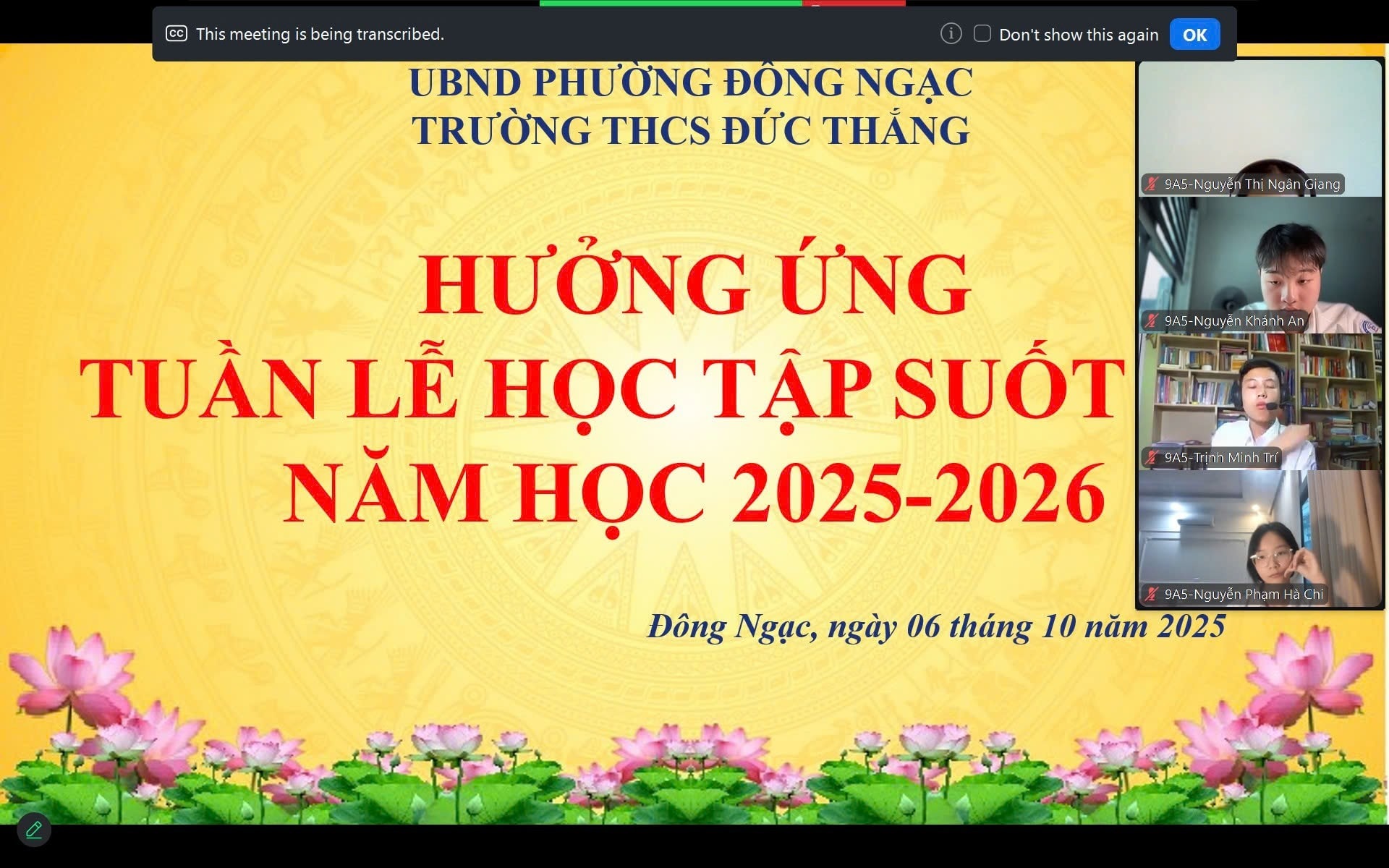 Thầy trò trường THCS Đức Thắng tích cực hưởng ứng “Tuần lễ học tập suốt đời” năm 2025–2026, lồng ghép tuyên truyền kỹ năng tự học và tìm kiếm tri thức trên nền tảng số. - Ảnh: Trường THCS Đức Thắng - Đông Ngoạc