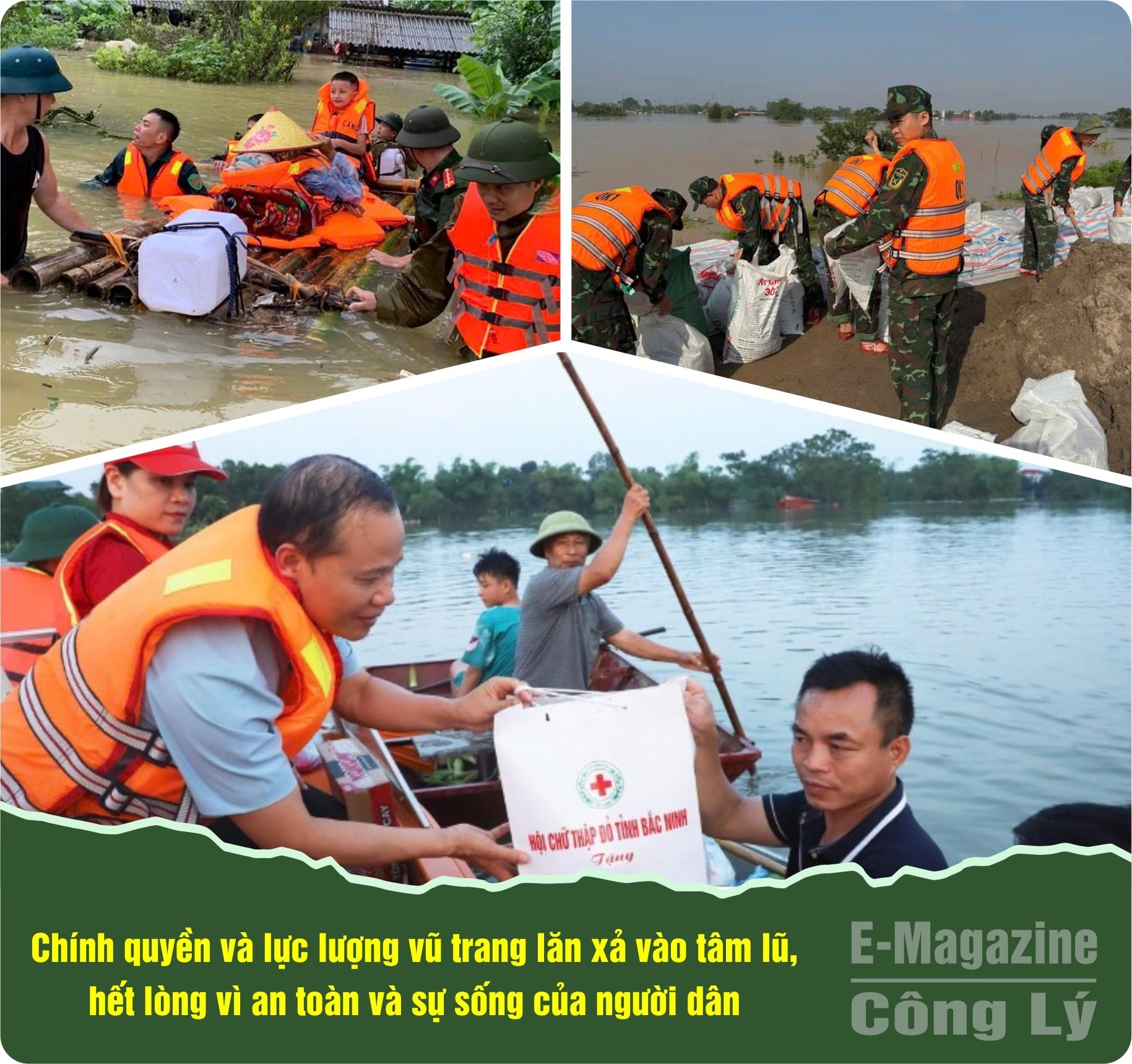 Đặc biệt, hình ảnh chính quyền địa phương cùng cán bộ, chiến sĩ Bộ đội và Công an không quản ngại khó khăn, lăn xả vào tâm lũ để di dời dân, cứu tài sản, hay mang từng suất cơm, gói mì, chai nước đến tay người dân đã trở thành biểu tượng sống động của sự hy sinh và trách nhiệm. Họ không chỉ là lực lượng cứu hộ mà còn là chỗ dựa vững chắc, là niềm tin của bà con trong cơn hoạn nạn.