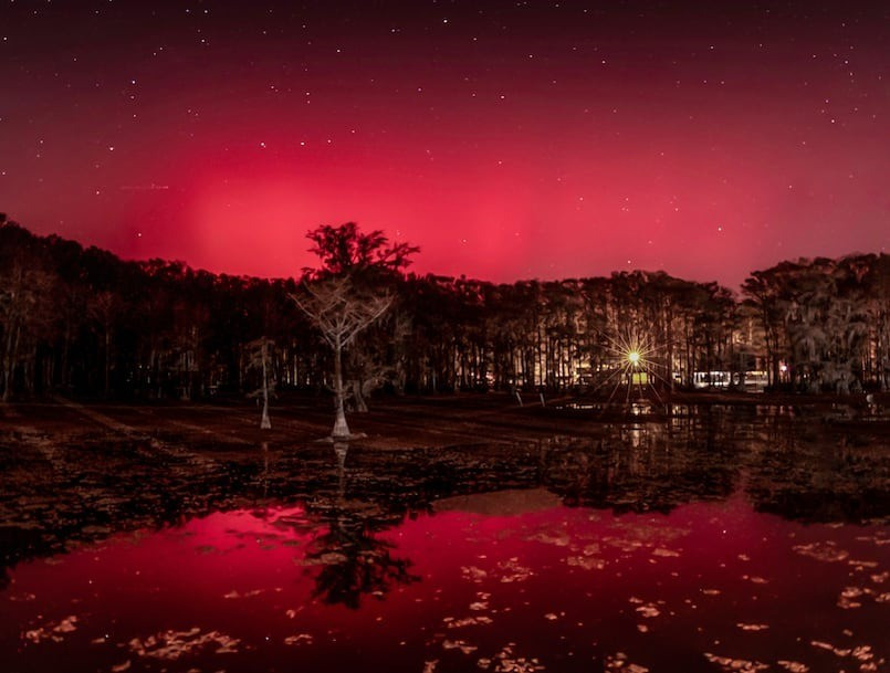 Những luồng sáng này, còn được gọi là cực quang phương Bắc, có thể nhìn thấy ở những nơi xa hơn về phía Nam như New Mexico và Texas. Ảnh: Submitted by Dexter James.