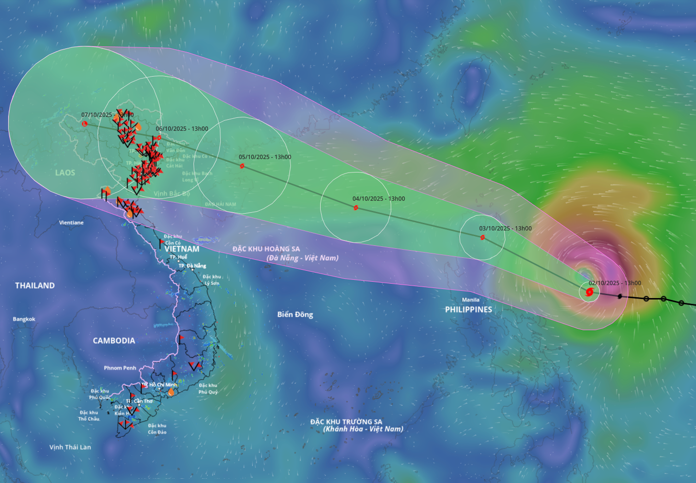 Dự báo trong chiều và tối 3/10, bão sẽ vào Biển Đông với cường độ khoảng cấp 10, giật cấp 12. Sau khi vào Biển Đông, bão tiếp tục di chuyển nhanh theo hướng tây tây bắc, mỗi giờ đi được 25km/h và tiếp tục mạnh lên.