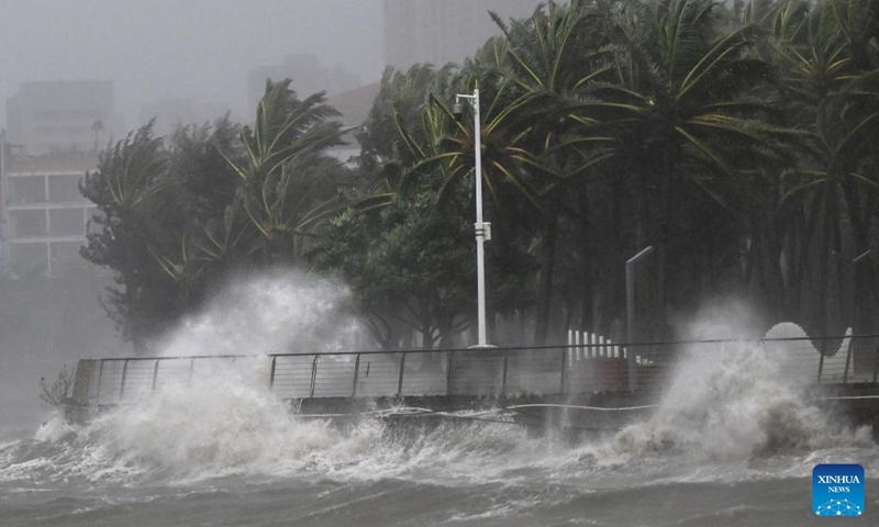 Sóng cao ở khu vực bờ biển Hải Khẩu, tỉnh Hải Nam, miền Nam Trung Quốc ngày 5/10. Ảnh: Tân Hoa xã