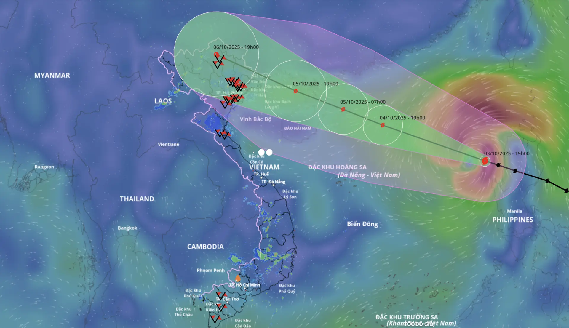 Đến 19 giờ ngày 4/10, bão di chuyển theo hướng Tây Tây Bắc, tốc độ khoảng 25km/h và có khả năng mạnh thêm. Vị trí tâm bão ở khoảng 19,1 độ Vĩ Bắc; 114 độ Kinh Đông, trên khu vực Bắc Biển Đông, cách bán đảo Lôi Châu (Trung Quốc) khoảng 350 km về phía Đông Đông Nam. Sức gió mạnh cấp 12, giật cấp 15.