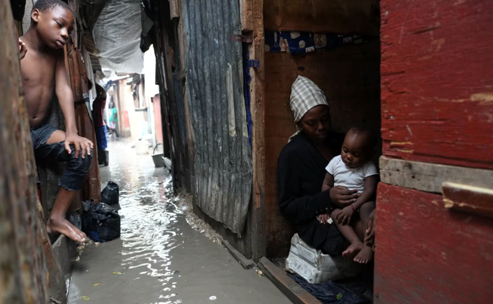 Người dân hứng chịu trận mưa lũ lớn do cơn bão Melissa gây ra ở Port-au-Prince, Haiti. Ảnh:Odelyn Joseph/AP