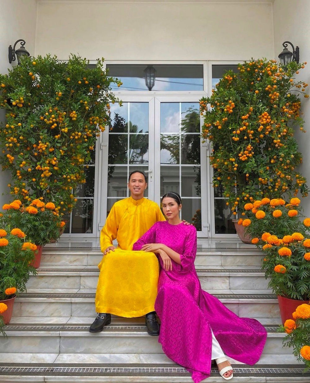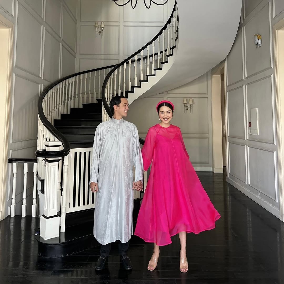 Dù là tông màu tươi sáng hay thiên về màu trầm, Tăng Thanh Hà vẫn được khán giả khen ngợi hết lời vì nhìn đầy thanh nhã, yêu kiều. Những bức ảnh hai vợ chồng Hà Tăng cùng mặc áo dài, nắm chặt tay nhau chụp ảnh ở góc cầu thang xoắn ốc trong căn biệt thự sang trọng đã trở nên quen thuộc với cư dân mạng.