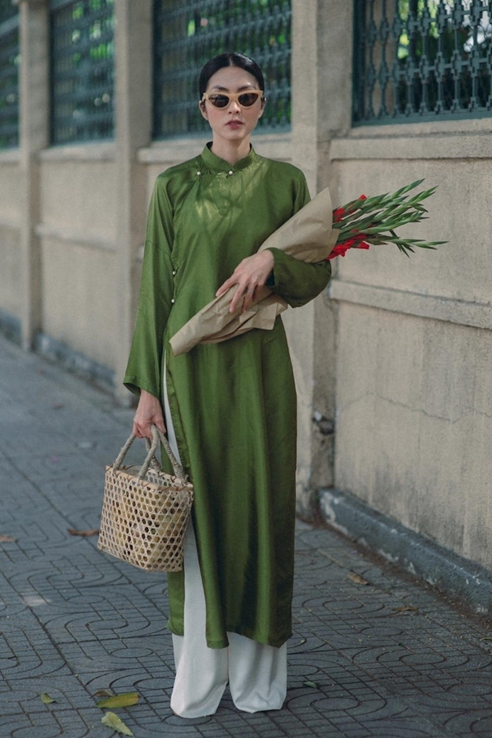 Thế nhưng Tăng Thanh Hà vẫn là cái tên khiến khán giả phải tò mò không biết Tết năm nay cô sẽ chọn áo dài như thế nào. Thật ra Tăng Thanh Hà lâu nay vẫn chung thủy với kiểu áo dài dáng suông rộng, chất liệu lụa hoặc gấm mềm mại, màu trơn có in hoa văn chìm.