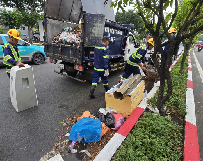 Dọn dẹp vệ sinh trên tuyến đường Phạm Văn Đồng
