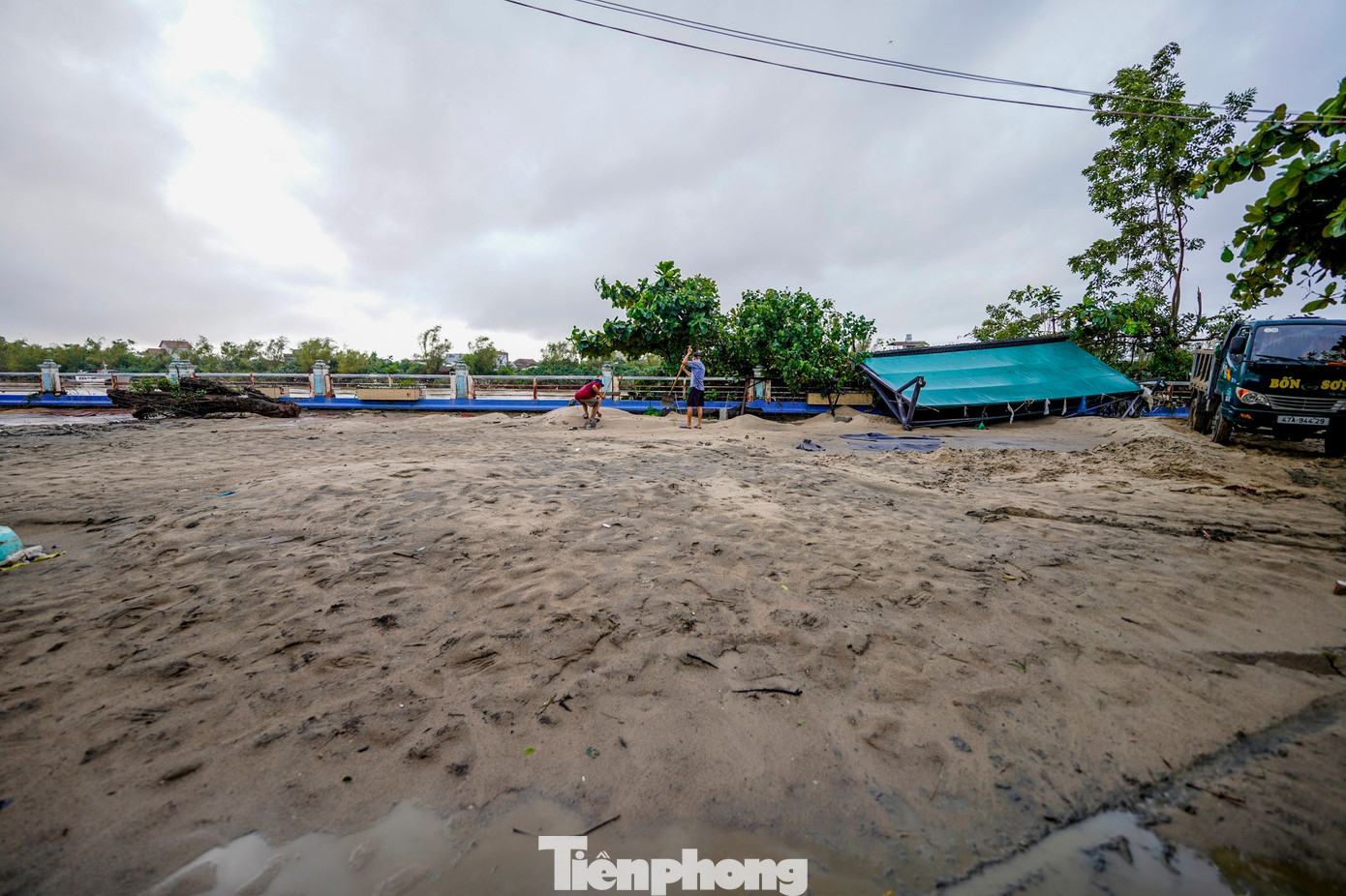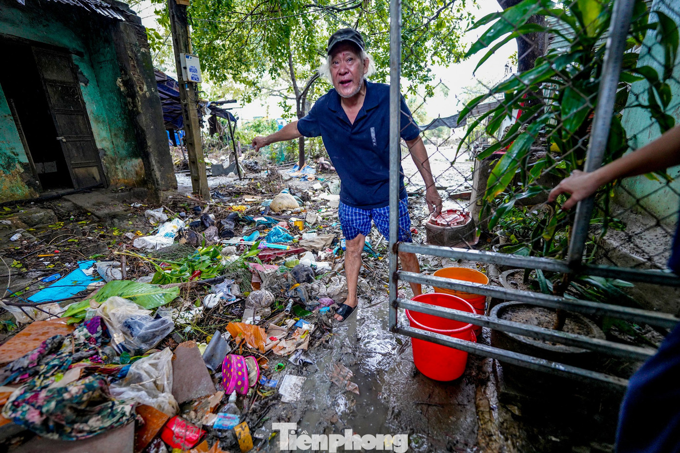 Rác và bùn từ sông Đà Rằng theo dòng nước tràn vào, lấp đầy nhiều hẻm nhỏ. Ông Thanh, sống gần bờ kè, cho biết: “Sức người không thể dọn nổi, chỉ chờ xe môi trường vào thu gom”.